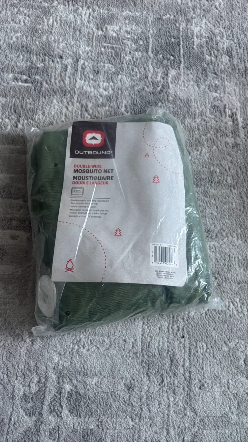 171Selling a brand new Outbound Double-Wide Mosquito Net! It offers reliable protection from mosquitoes, flies, wasps, and other insects. Made of durable 156 mesh polyester, this two-person mosquito net has a rectangular shape that fits over your sleeping bag or cot to keep pests out while you sleep. The net features six reinforced tie tabs for secure attachment. Originally bought for $29.99