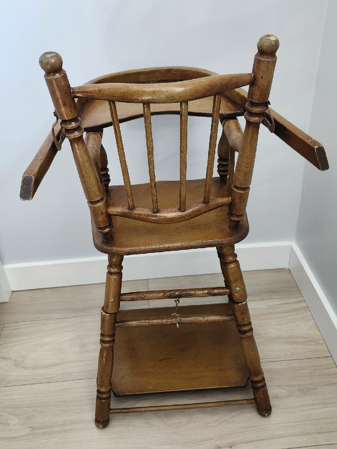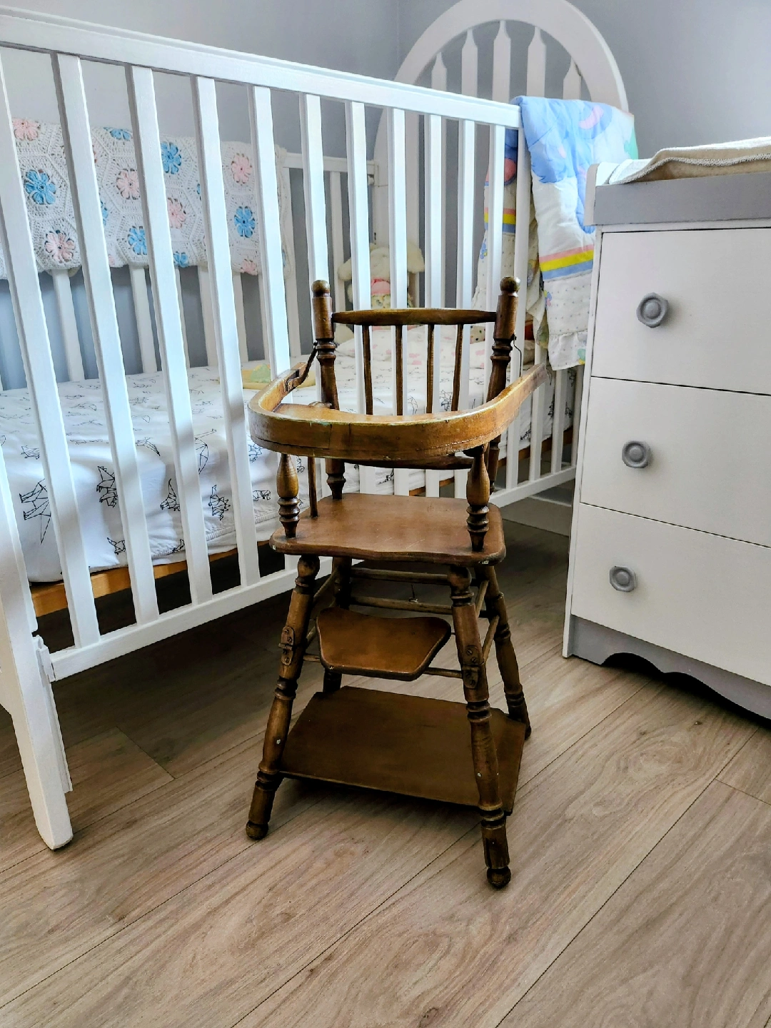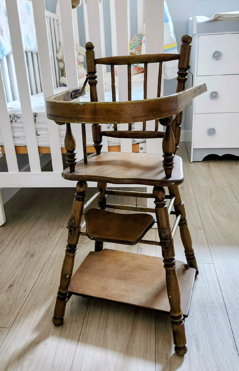 15$60 OBO Antique Collectible Add a touch of vintage charm to your baby shower or nursery decor with a unique convertible mini highchair. This adorable wooden highchair features metal hinges and converts to a desk, making it a versatile prop for any celebration. We used it as a beautiful flower holder to welcome guests to our baby shower, and it was a hit. - Made of real wood with metal hinges - Converts from highchair to desk - Size: 28"h x 14"w x 16"d Perfect for: - Baby showers - Nursery decor - Centerpieces - Photography props