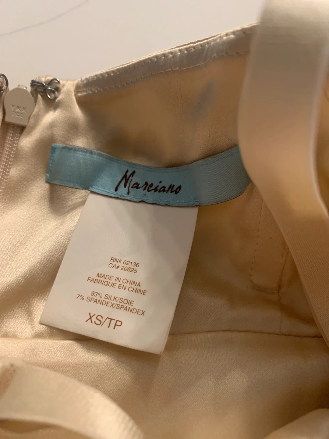 25Selling a beautiful Marciano dress in size XS. It's made of 93% silk and 7% spandex. Perfect for a special occasion!