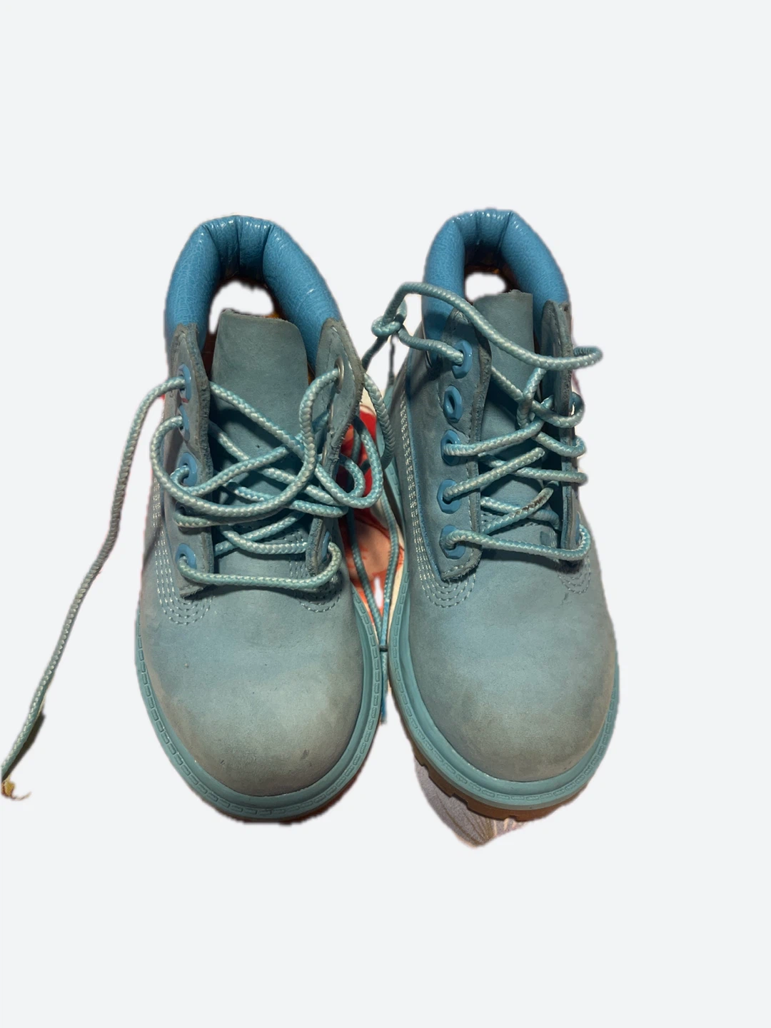 Selling a pair of adorable Timberland boots in baby blue! They're in good condition and perfect for your little one. Size 7.