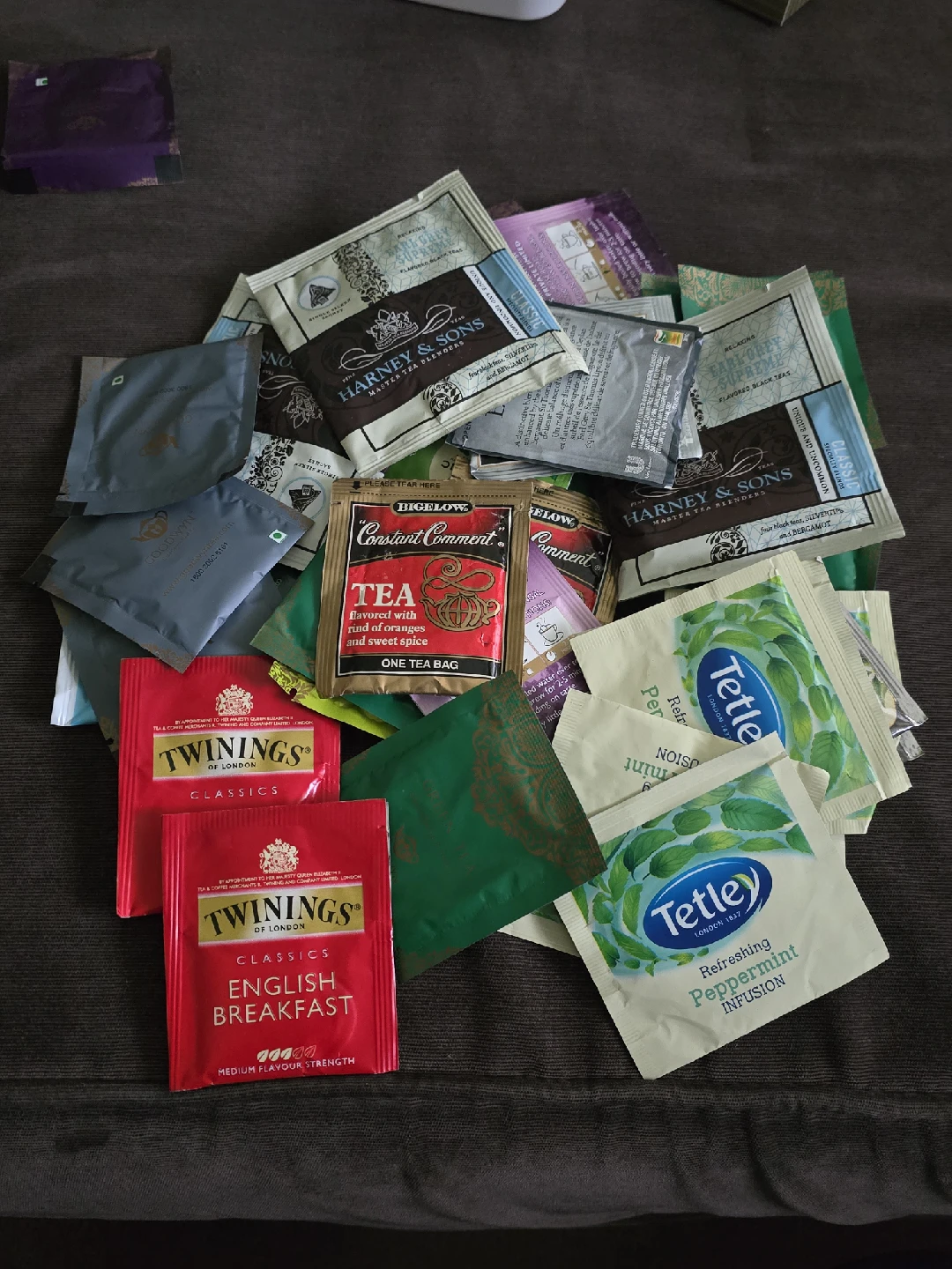 Selling a collection of assorted tea bags! Includes a variety of flavours from Harney & Sons, Twinings, Tetley and more. Perfect for trying new teas or stocking up your tea collection
