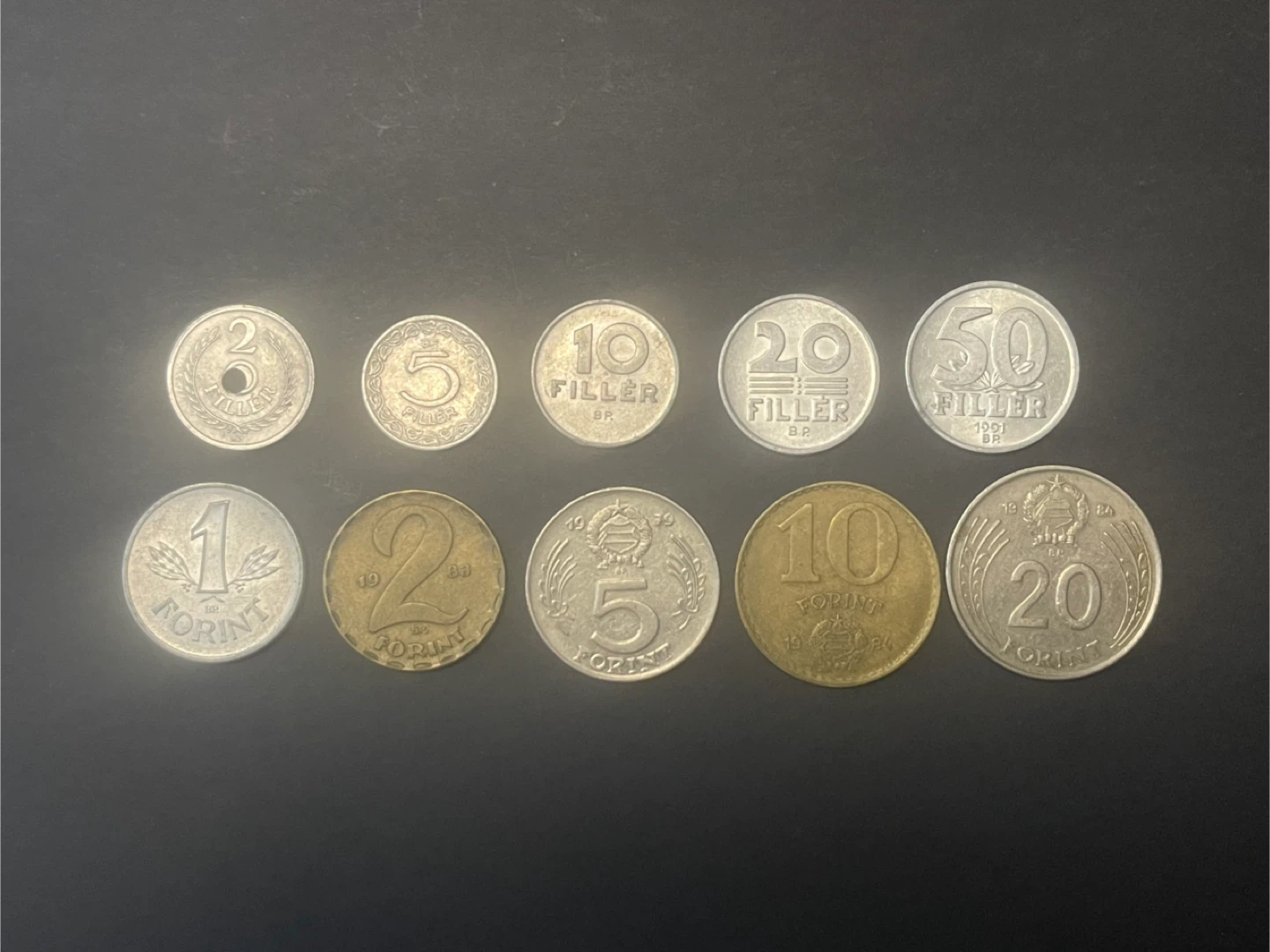 Full set of Hungarian coins from holed 2 fillers to 20 forints. Nice condition, great to add to an existing collection or start one.