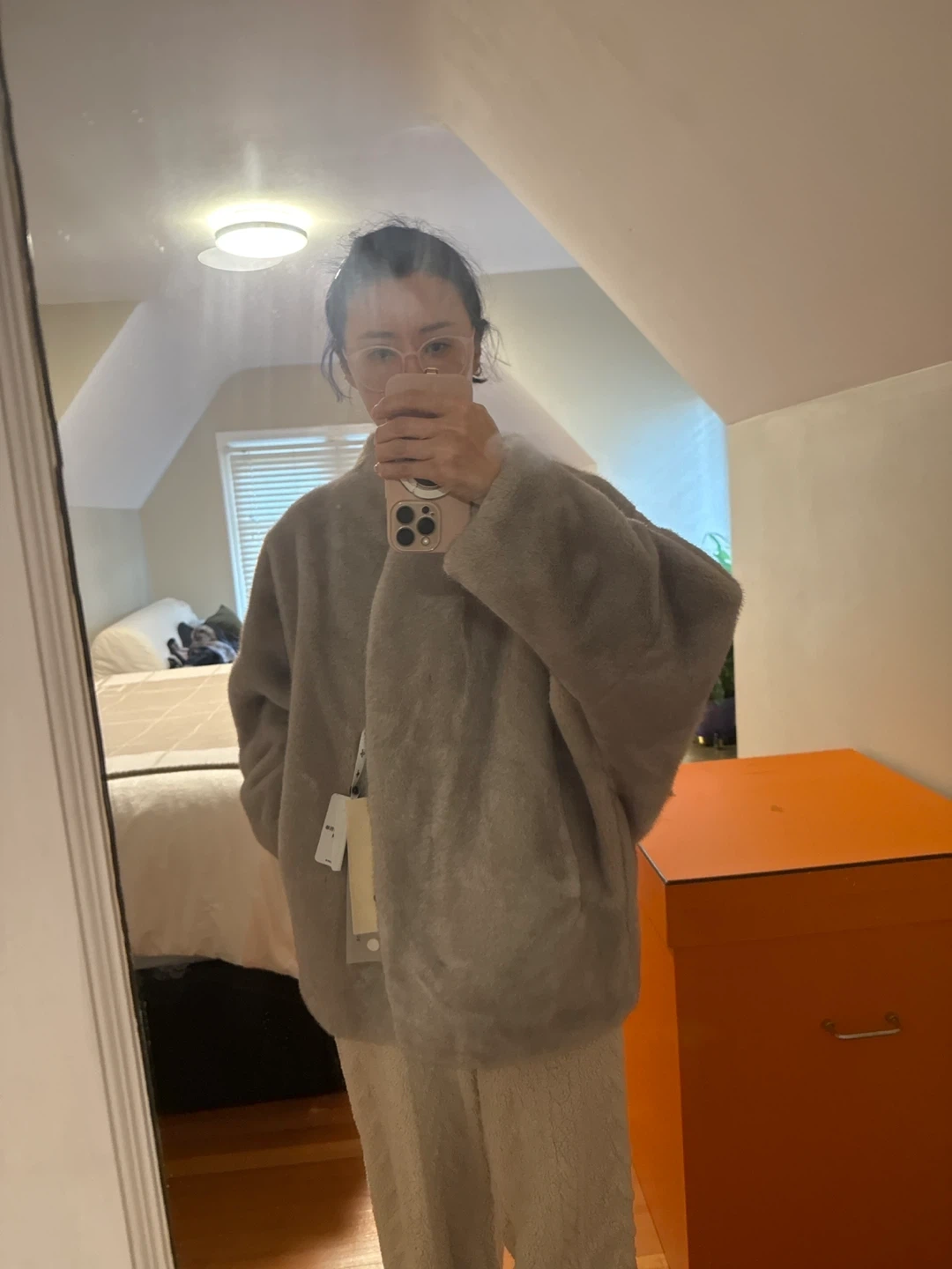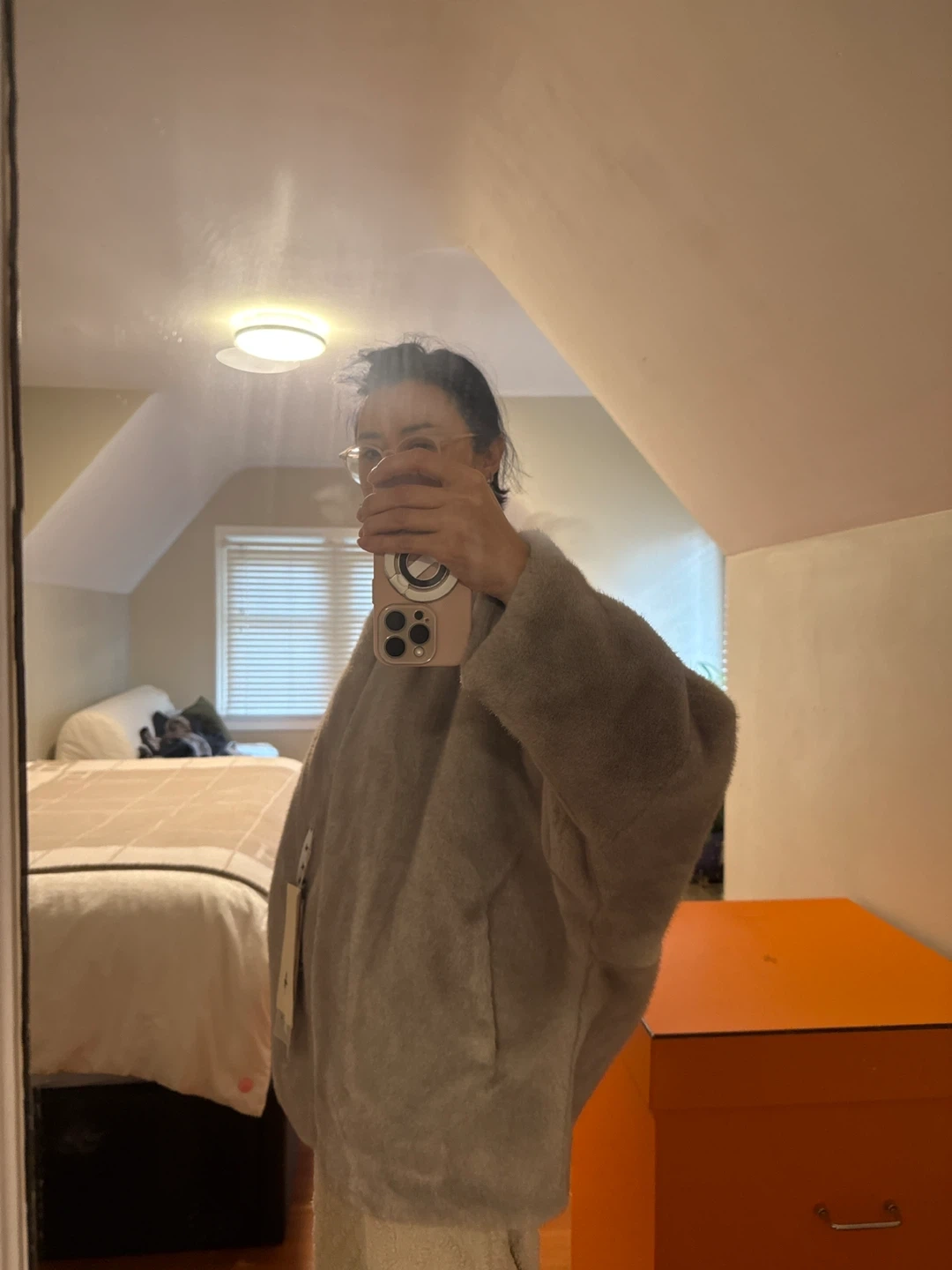 Cozy Apiece Apart faux fur jacket, size medium! The material is soft and warm, perfect for cooler weather. The jacket is in great condition and ready for a new home