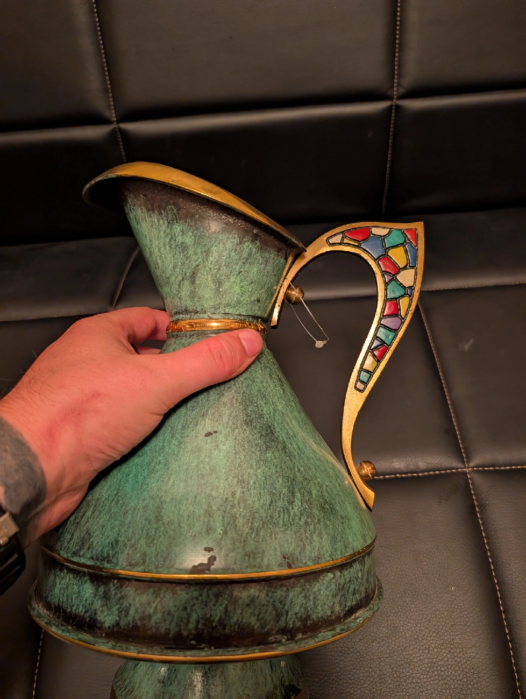 vintage dayagi verdigris green brass pitcher