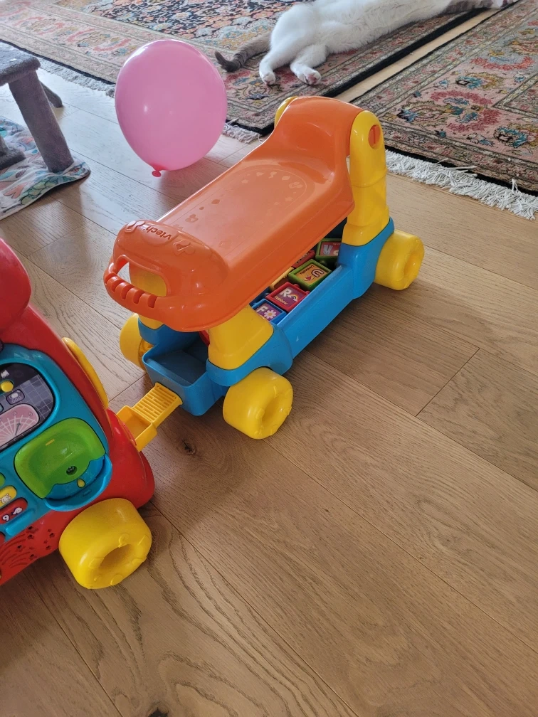 Selling a VTech ride-on alphabet train and walker. Great for toddlers learning their ABCs and developing motor skills. It's in good condition and ready for a new home!