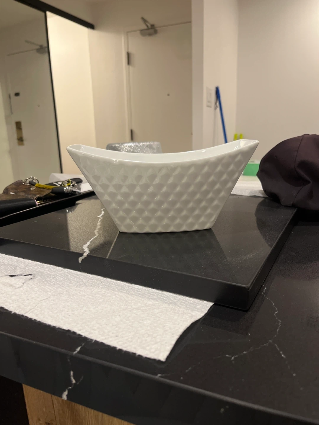 Selling a lovely white decorative serving bowl. It's in great condition and would look perfect on a dining table or kitchen counter. The textured design adds a touch of elegance