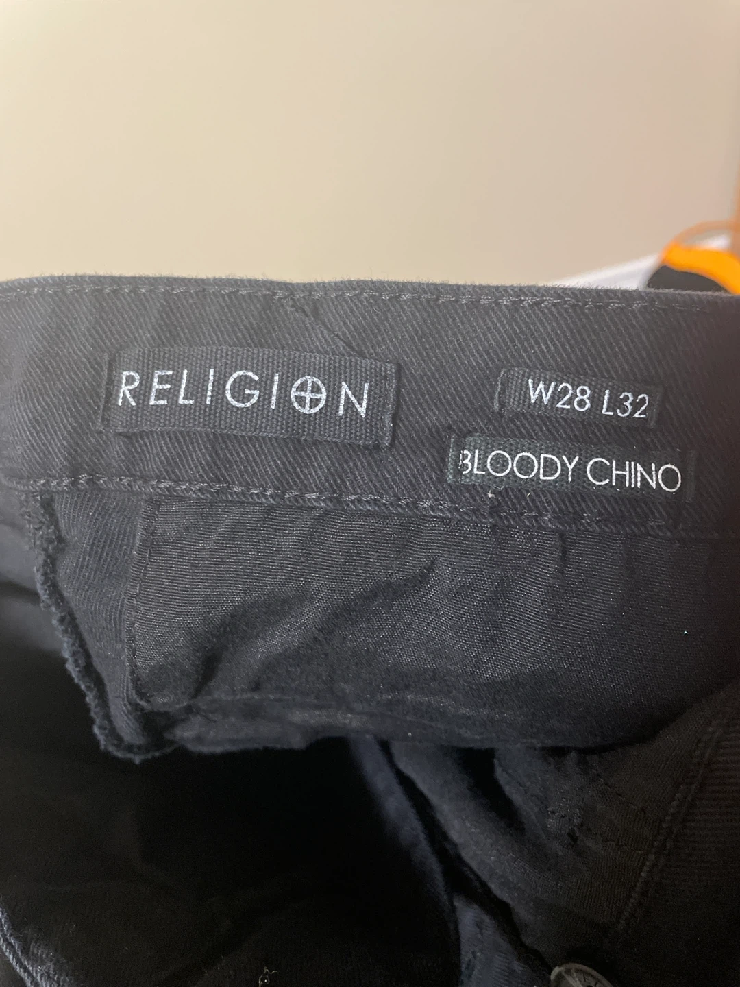 Selling a pair of Religion Bloody Chino pants in black. The size is W28 L32. They're in good condition and ready for a new home!