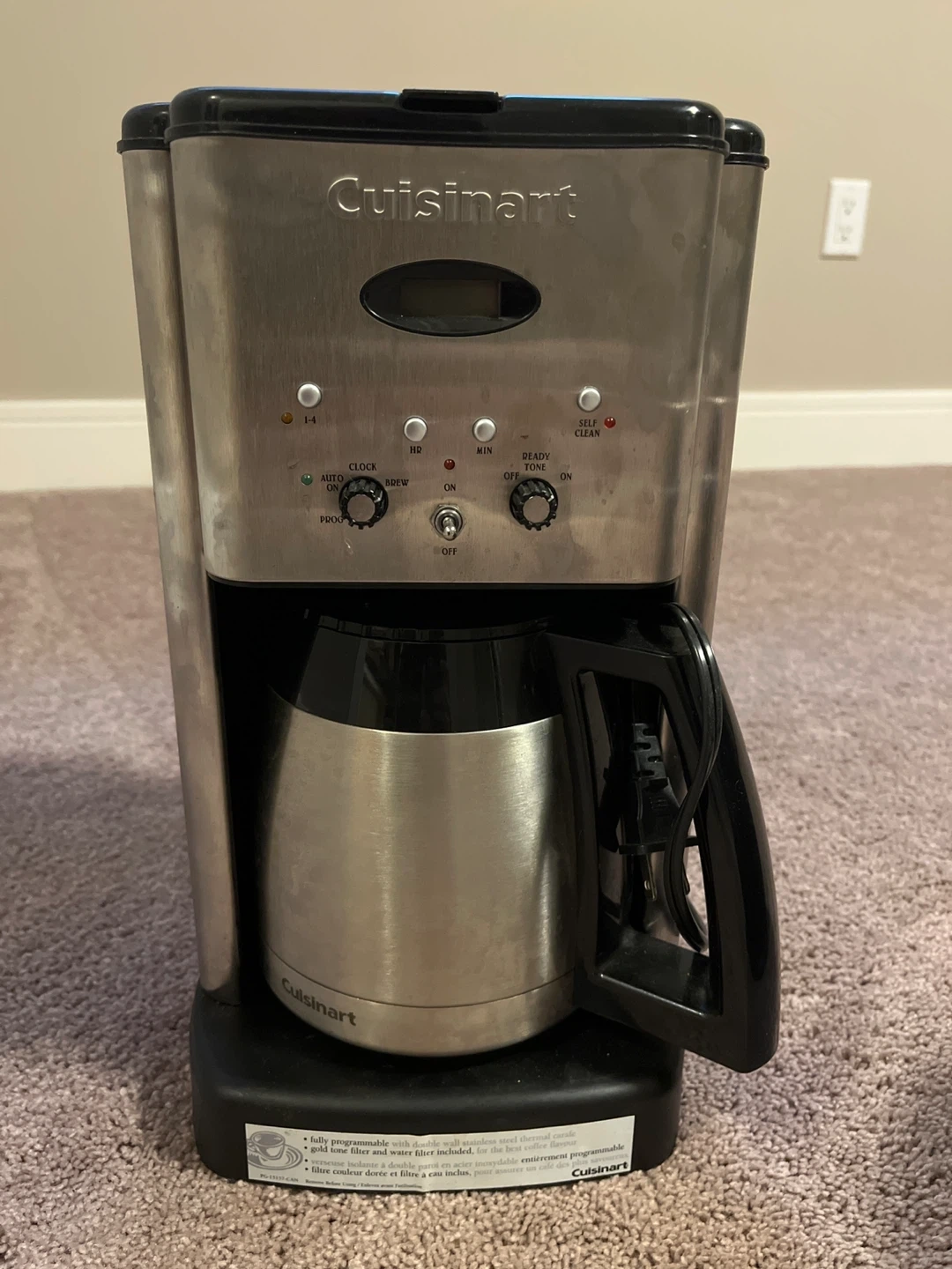 108Selling a lightly used and very clean Cuisinart coffee maker. It has a stainless steel finish, and an insulated carafe. Comes with reusable wire mesh filter.