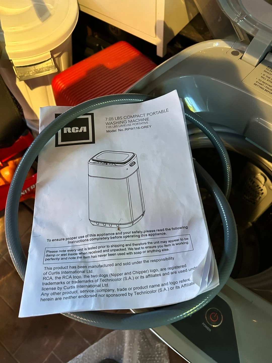 Selling a RCA 7.05 LBS compact portable washing machine in grey! This model is RWP116-GREY. It's perfect for small spaces and easy to move around. Great for apartments or anyone needing a compact laundry solution brand new