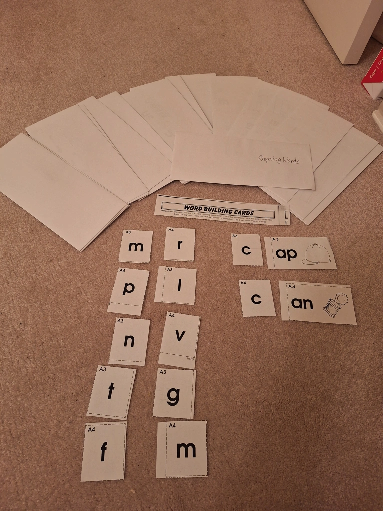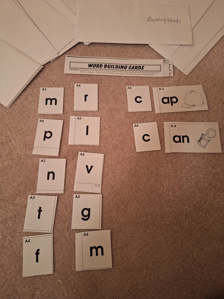 132Great for teachers or parents! 22 envelopes, each with a set of letters and word endings to make rhyming words. They are paper and ready to laminate if needed. Great for early literacy skills and fun learning activities.