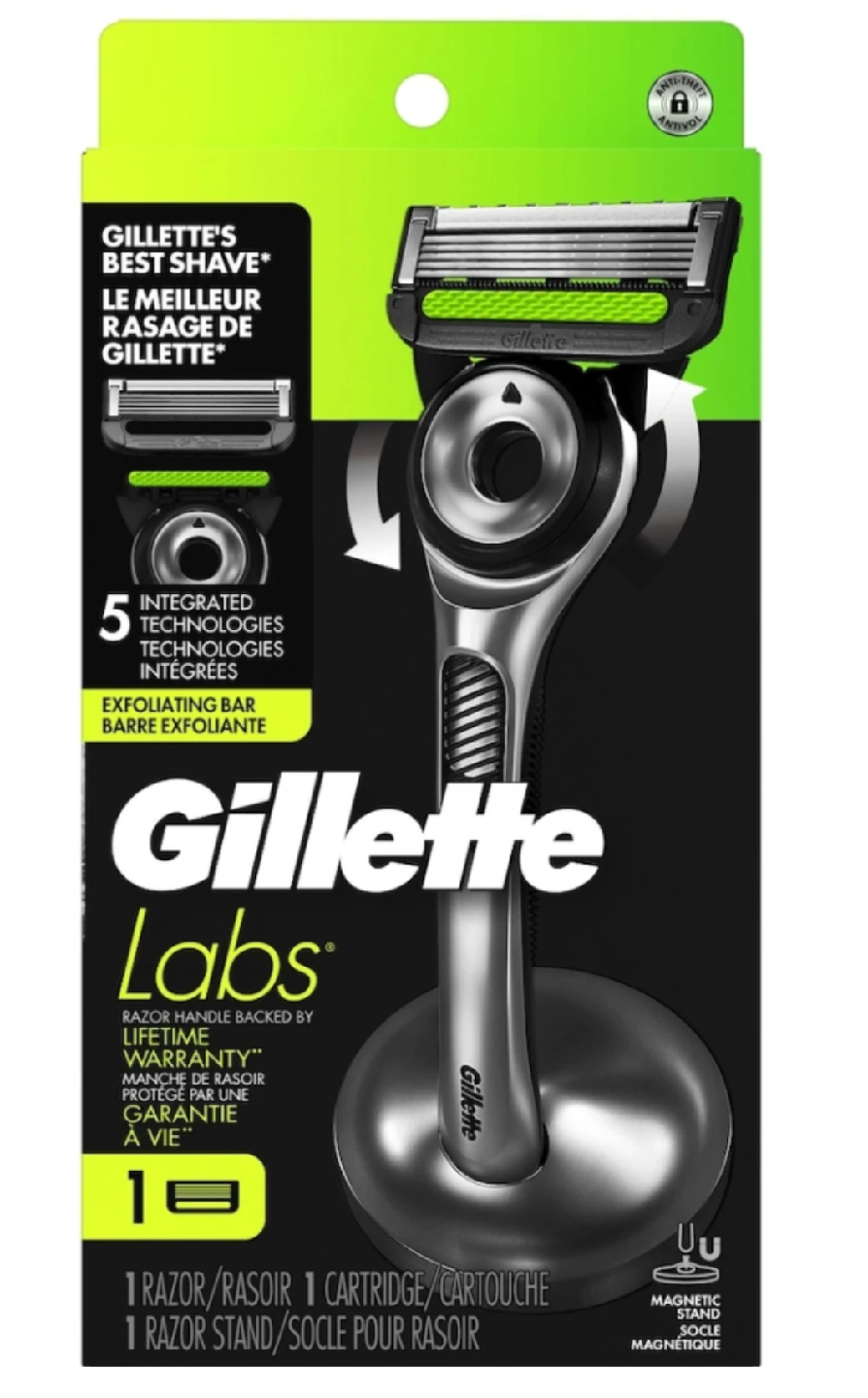Experience a close and comfortable shave with this new Gillette Labs razor, featuring 5 integrated technologies for an exceptional grooming experience, complete with an exfoliating bar and magnetic stand. The razor handle is backed by a lifetime warranty.