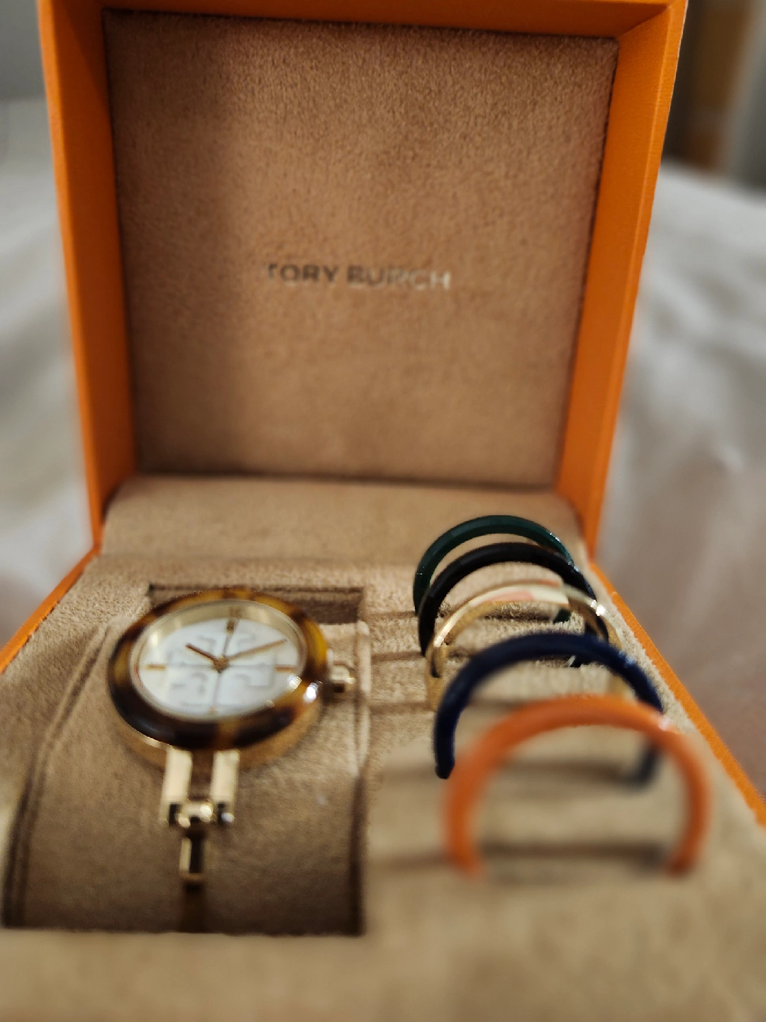 Selling a Tory Burch TBW2100 watch! It comes with interchangeable bezels to change up the look.