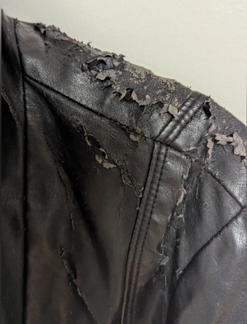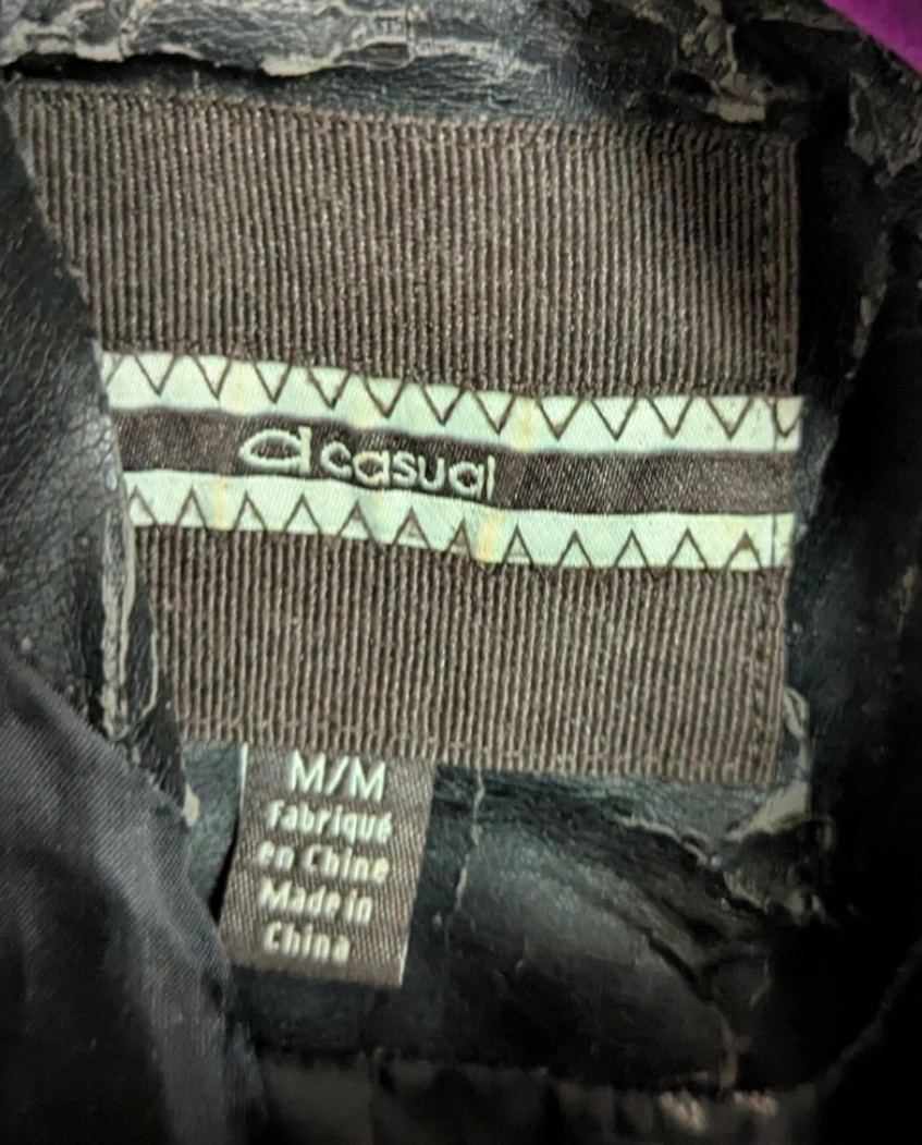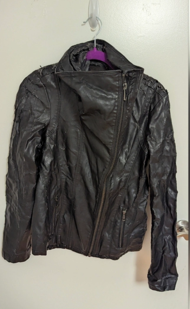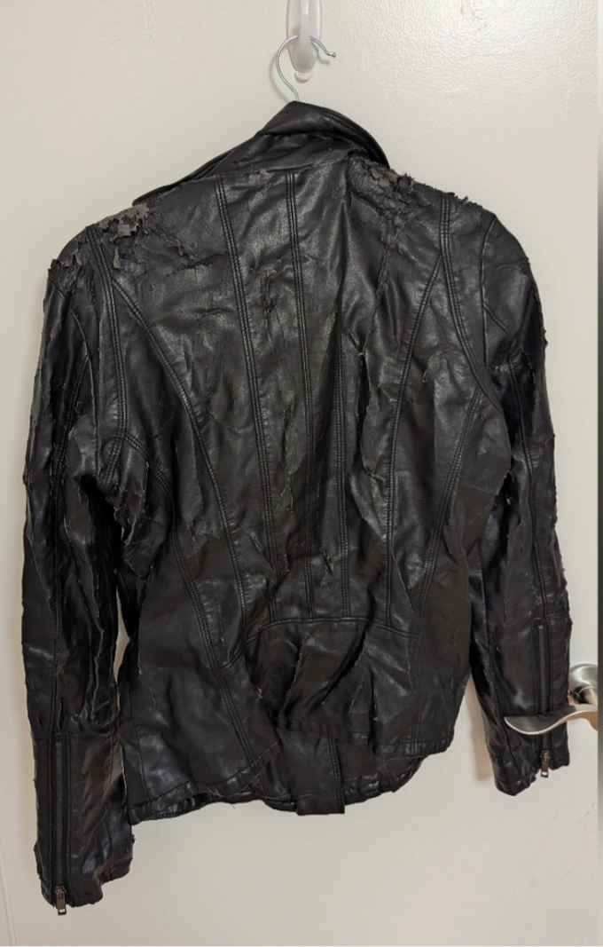 583Casual Distressed Black Leather Jacket - Women's Medium (Halloween) Selling a black leather jacket size Women's Medium. It's definitely seen better days, with some wear and tear as shown in the photos so I am.hoping someone may be able to use as a Halloween costume?