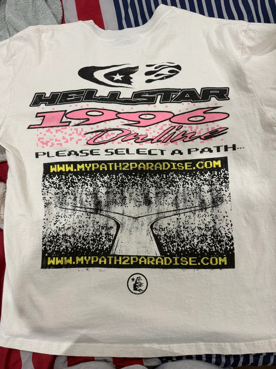 10Selling a Hellstar t-shirt with a unique design. The shirt features a print with the brand name Like new worn one time it’s to big one me so trying sell it