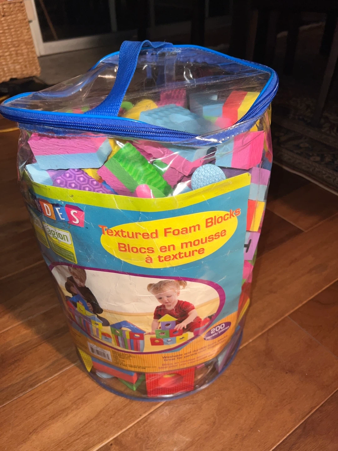 Selling a set of Textured Foam Blocks! This set includes 200 pieces of colourful, textured foam blocks perfect for creative play and building. Great for kids of all ages!