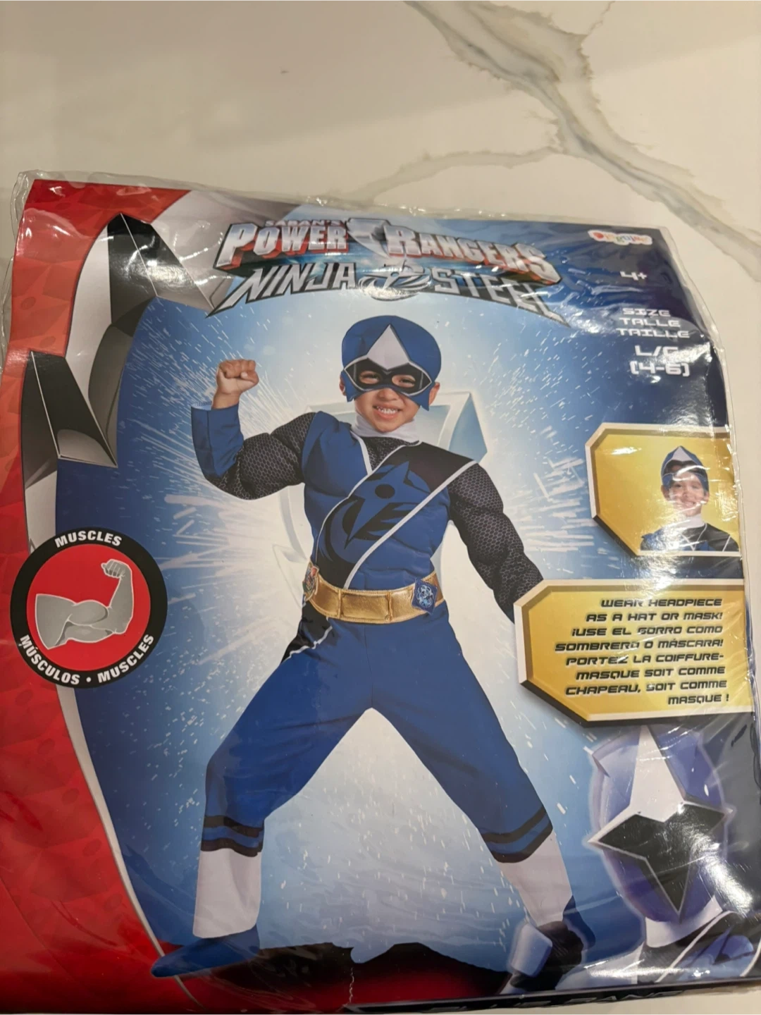 10Power Rangers Ninja Steel costume in size Large (4-6). Includes the headpiece. Perfect for dress-up or Halloween!