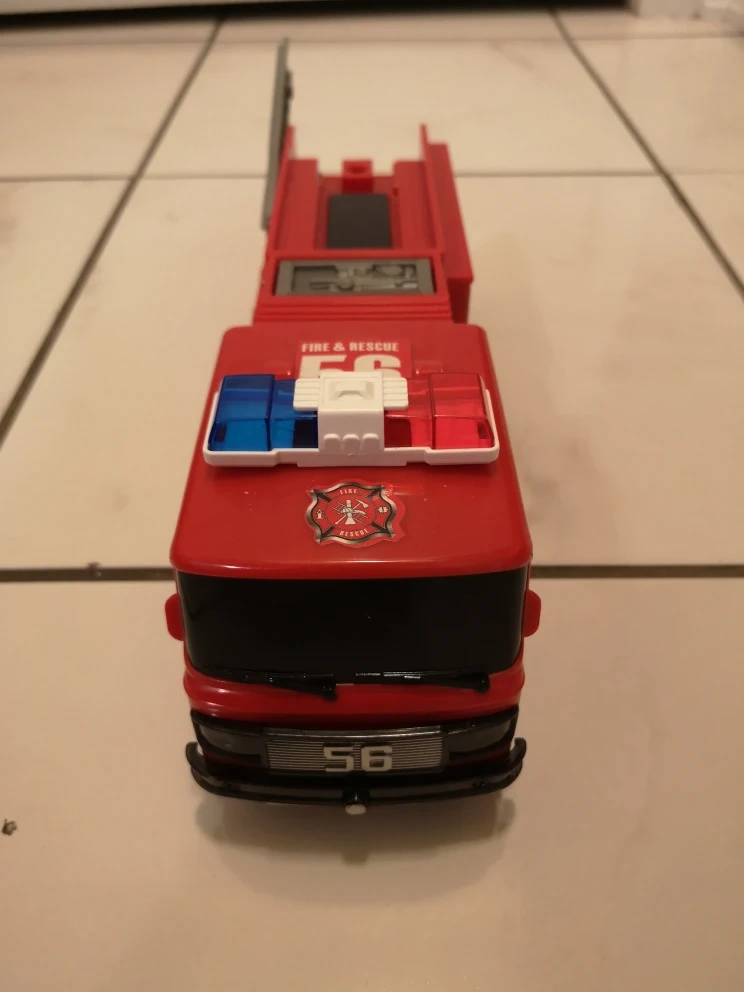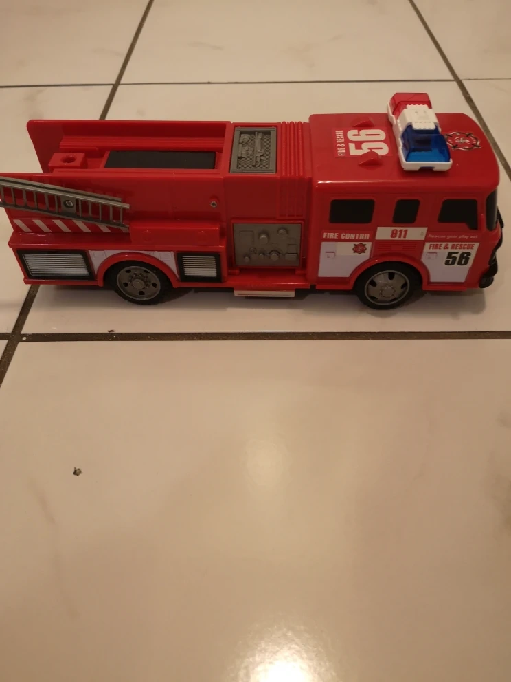 Selling a toy fire truck! It's red and looks like a fire & rescue vehicle. It has the number 56 on the sides and top. It's in good condition and ready for a new home!