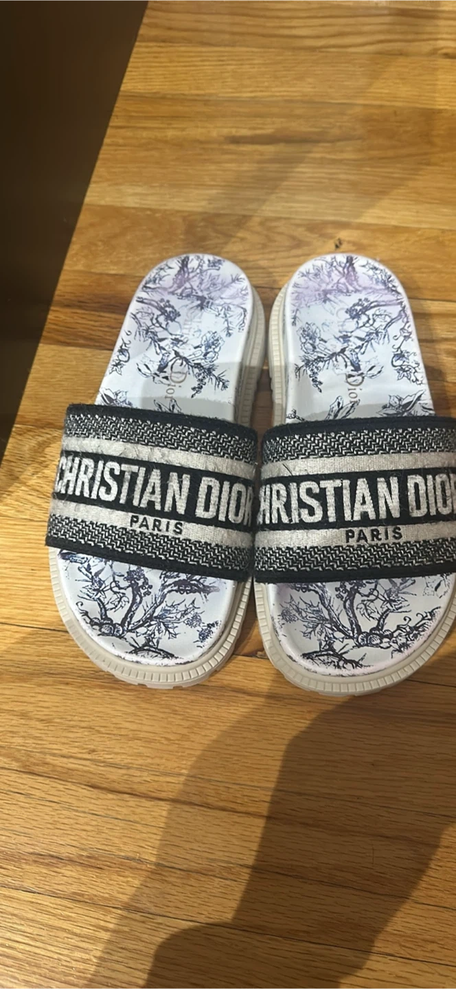 14Selling a pair of Christian Dior D-Way slide sandals! They feature the iconic Christian Dior Paris signature embroidered on the upper. The style has a comfortable design and effortless allure. The outsole features a Dior star emblem.