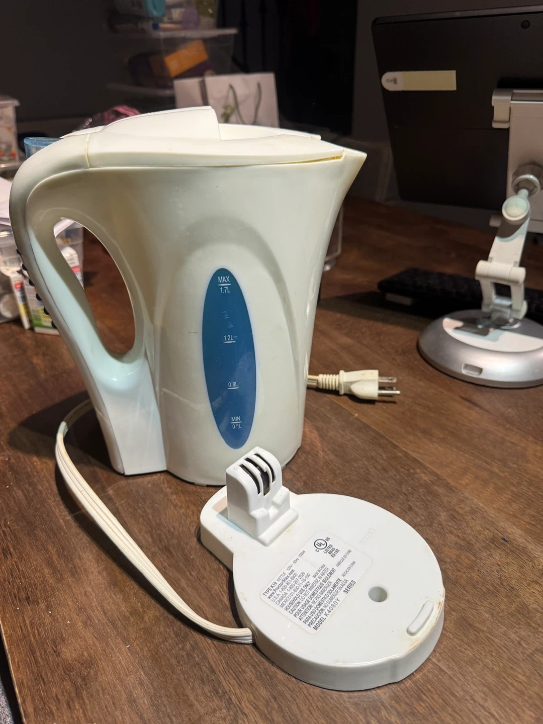 Selling a used electric kettle with a 1.7L capacity. It's in good working condition and perfect for quickly boiling water for tea, coffee, or anything else you need. It features a clear water level indicator so you can easily see how much water is inside