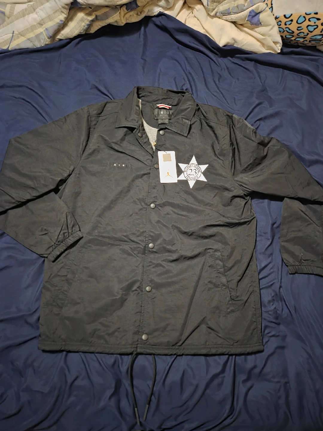 15Selling a Jordan Est. 1985 Security Coach Jacket in size XL. It's black with a grey lining and has a cool 'Security' print on the back. Great for layering or wearing on its own! never worn