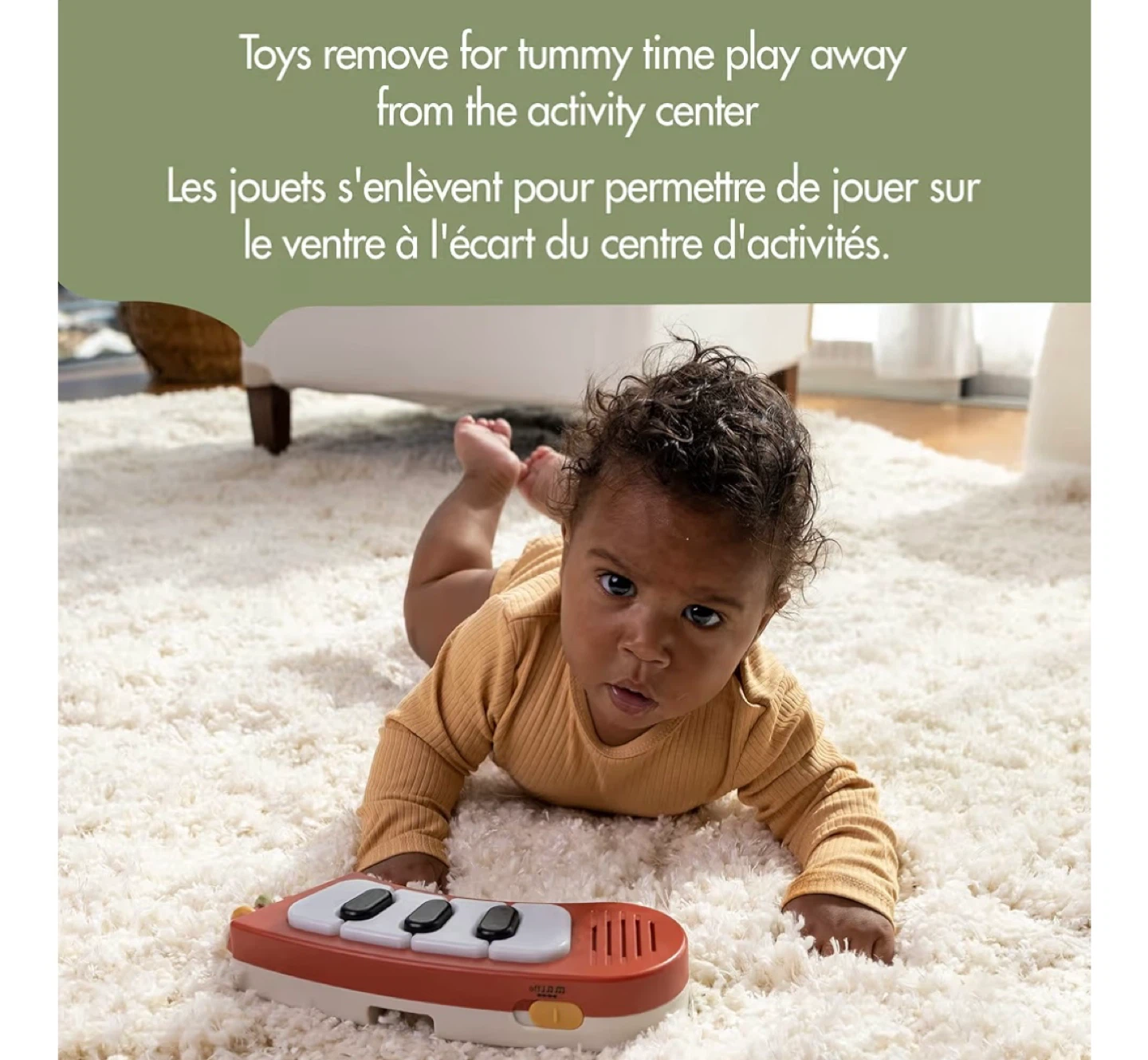 - Toys can be easily removed for interactive tummy time.