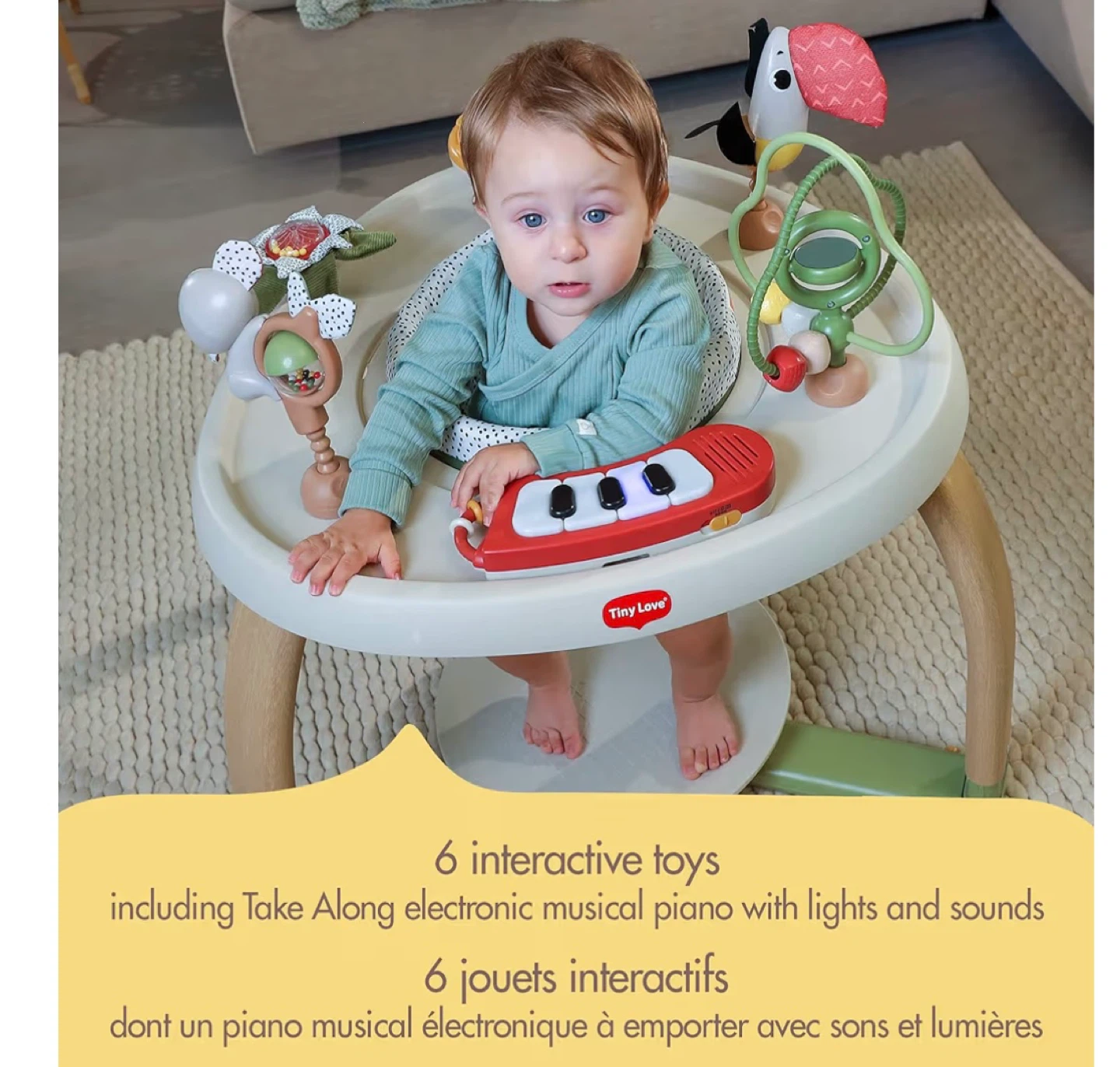 - 6 Interactive Toys (piano is a take along with musical piano, sound and lights).