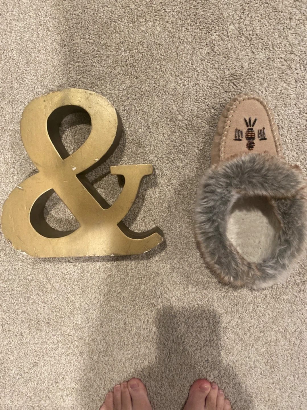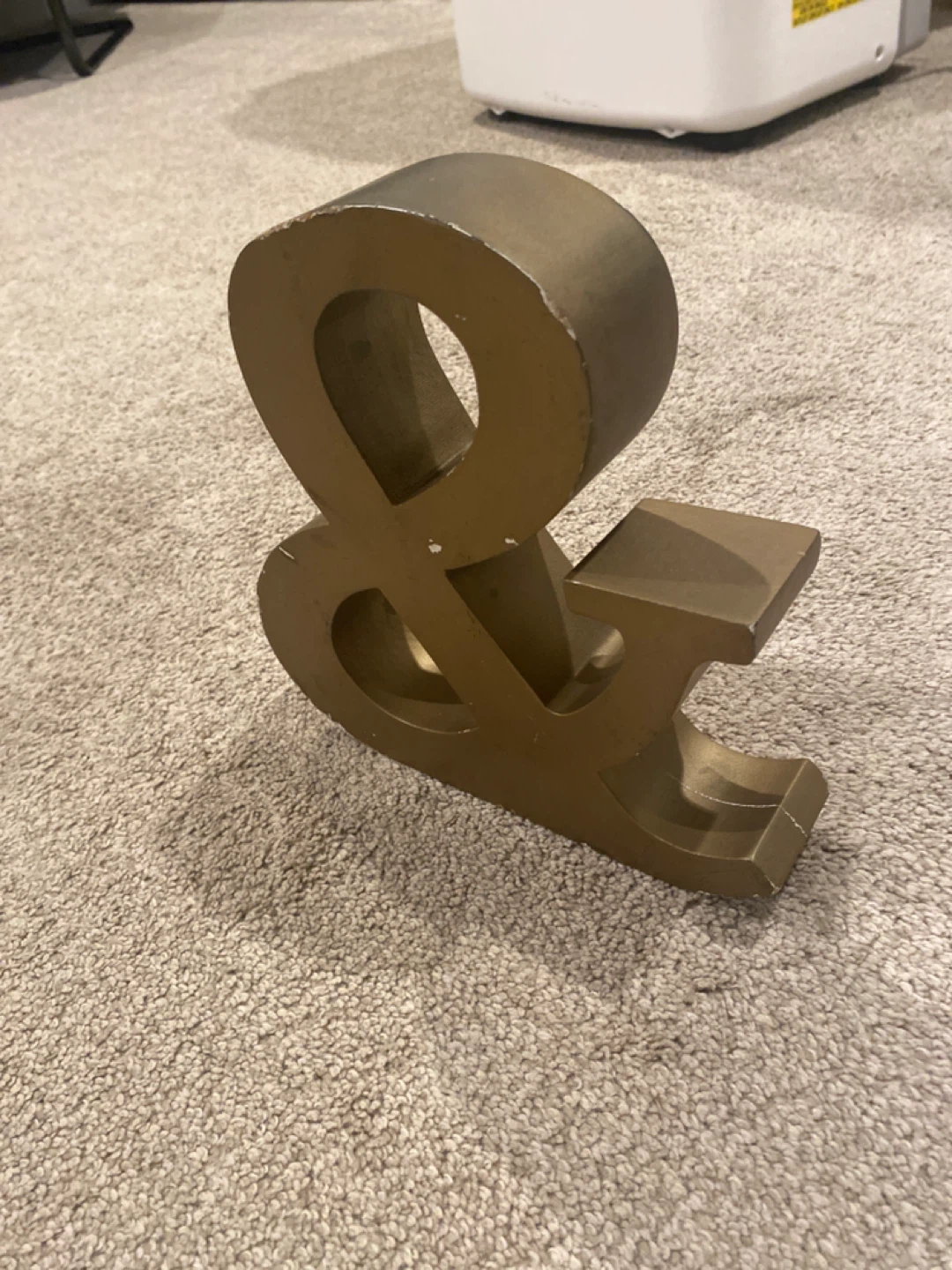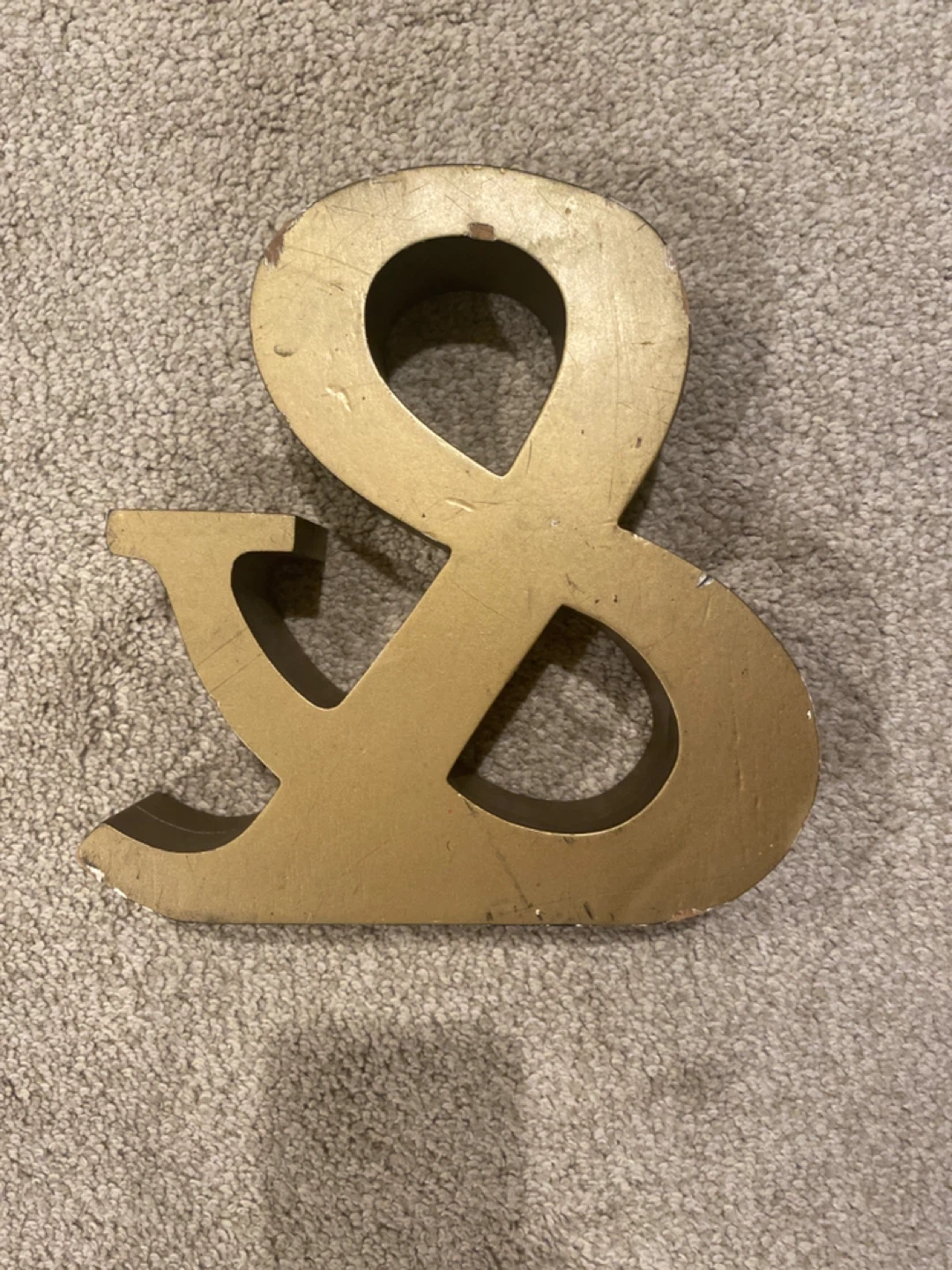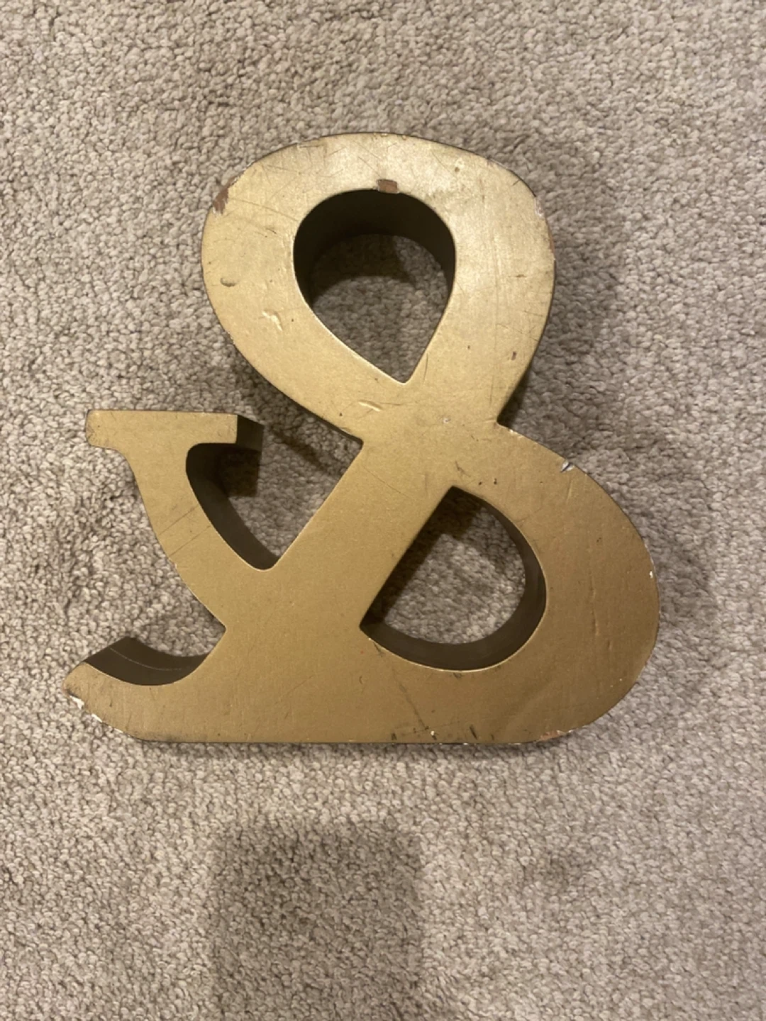 Selling a gold decorative ampersand (&). It's a stylish piece to add to any room. It has some signs of wear. Slipper is there to reference size. From nonsmoking home. Must pick up in west springs