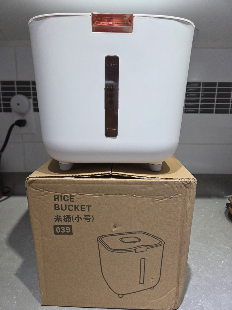 Selling a rice bucket, still in its original box! It's in new condition and ready to use. It's perfect for storing your rice and keeping it fresh