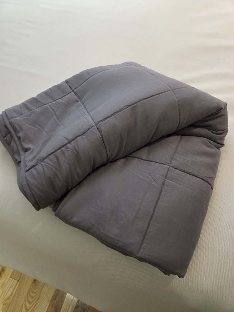 Selling a comfy grey weighted (10lbs) blanket! It's in excellent condition - used only once and was on top of the duvet (no direct body contact) and ready to help you relax.