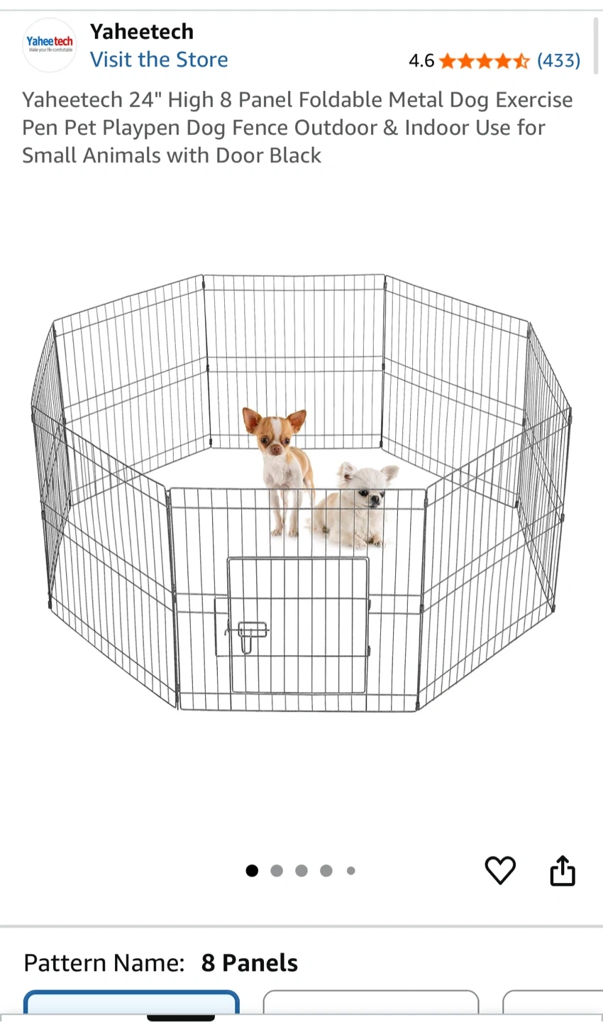 29Selling a Yaheetech 24" high 8-panel foldable metal dog exercise pen! It's perfect for both indoor and outdoor use for small animals. It comes in black and includes a door. Originally bought for $69.22