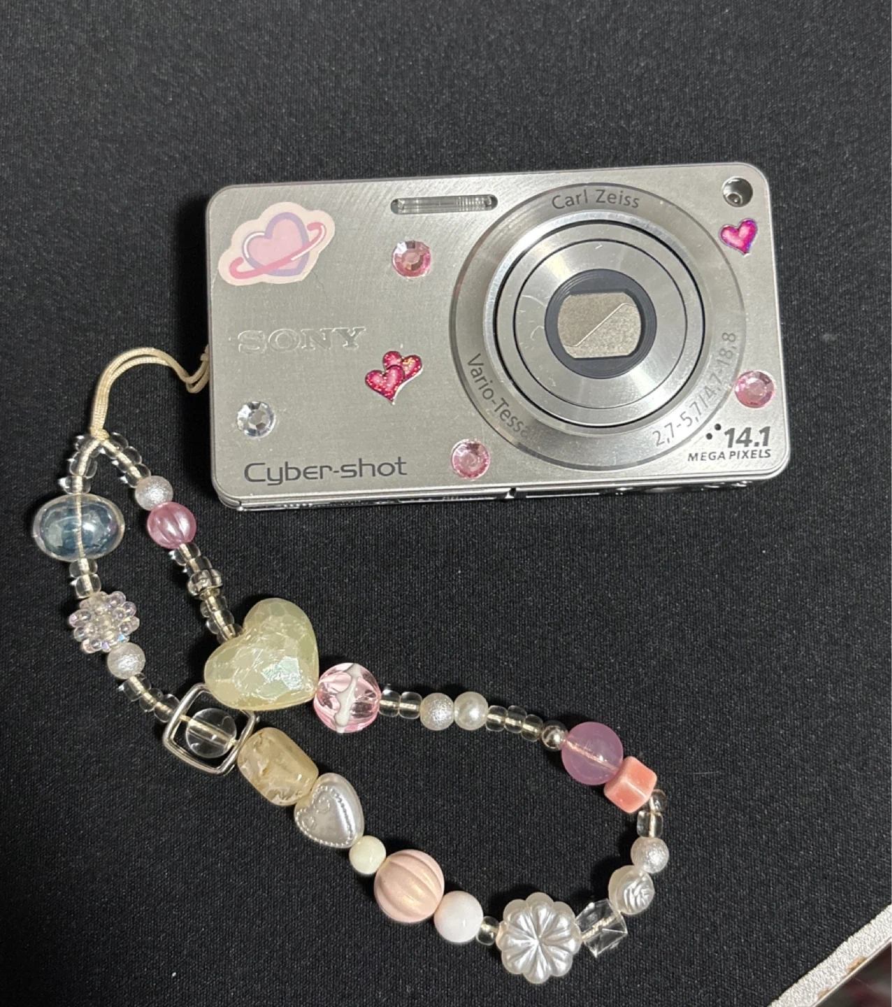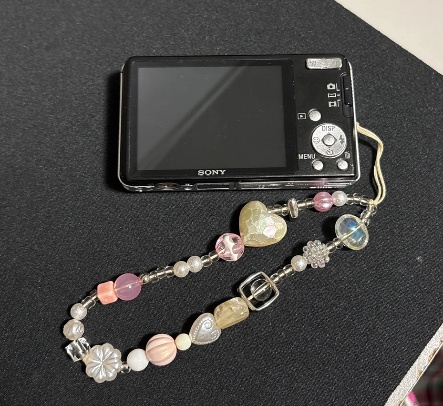 Selling a cute Sony Cyber-shot digital camera! It's has a few scratches but nothing noticeable. It also comes with a beaded wrist strap, battery and memory card. The camera is in JAPANESE only.