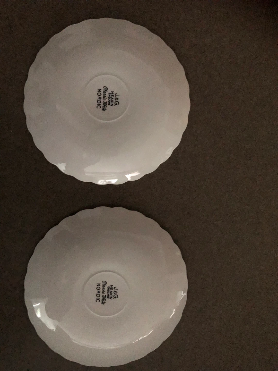 Here are two J&G Meakin saucers from the Classic White Nordic collection
