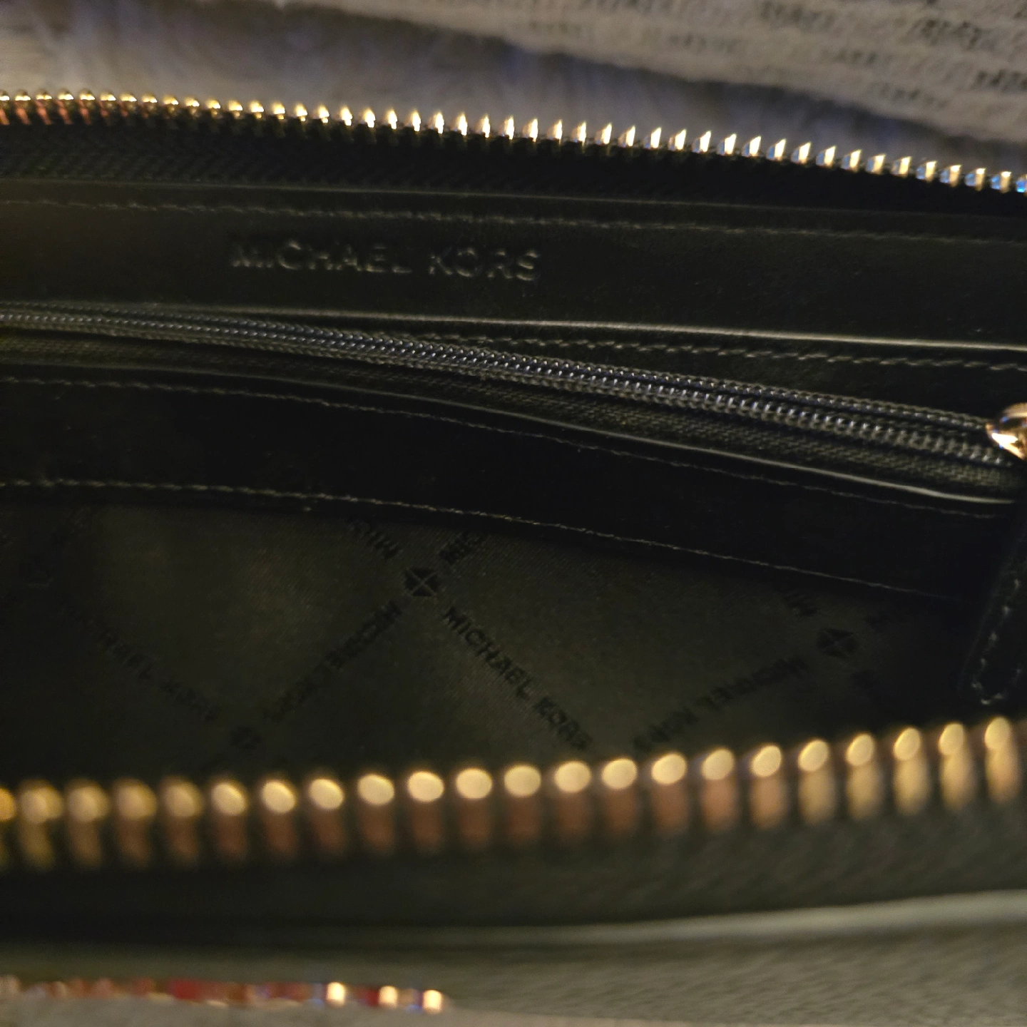 Michael Kors wallet in black leather. It's in great condition and has lots of space for cards and cash, plus a zippered closure to keep everything secure. Perfect for every day use :)