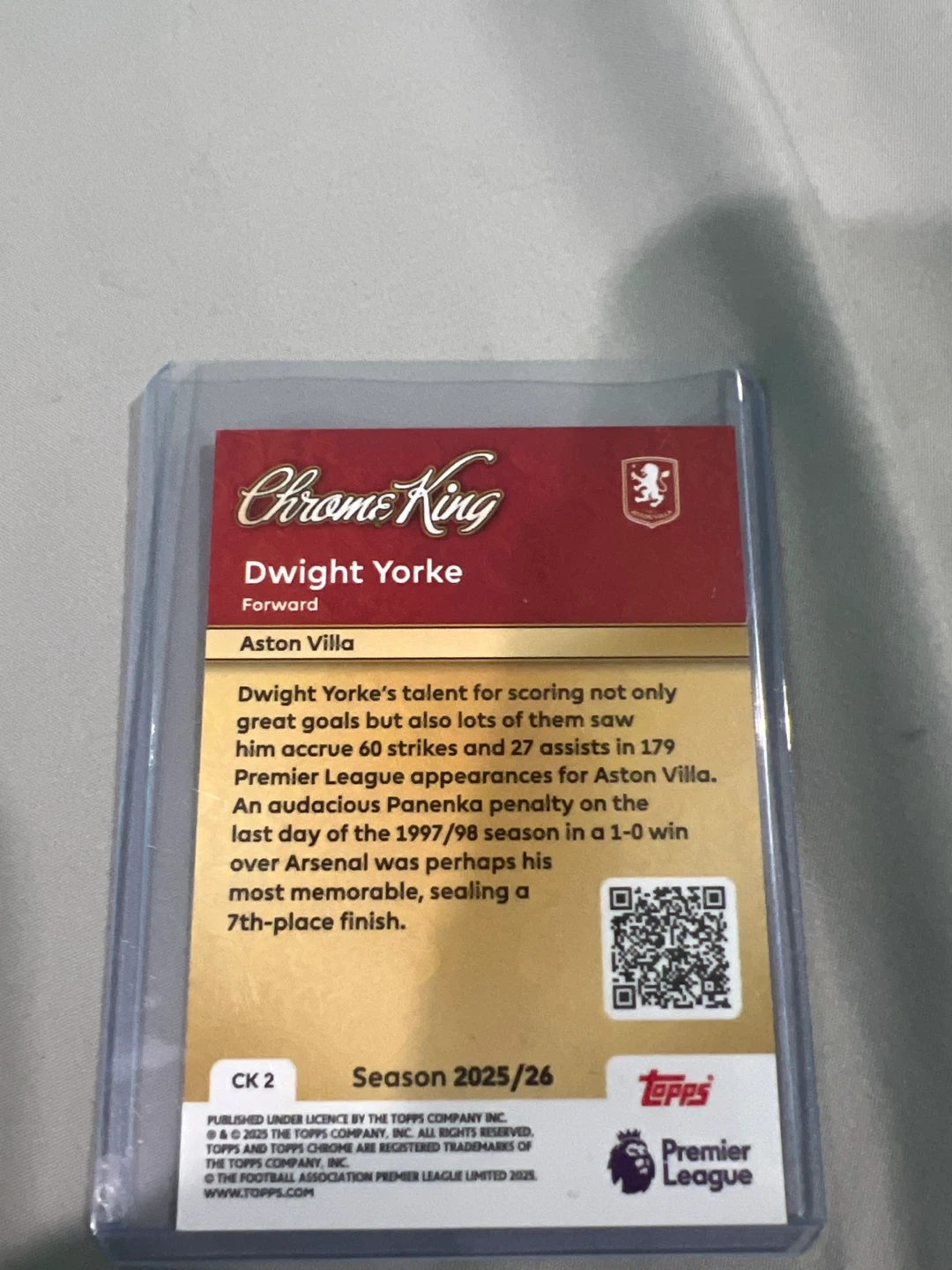 10Selling a Topps Chrome King trading card featuring Dwight Yorke of Aston Villa. It's from the Season 2025/26 Premier League collection. A great addition for any football card collector!