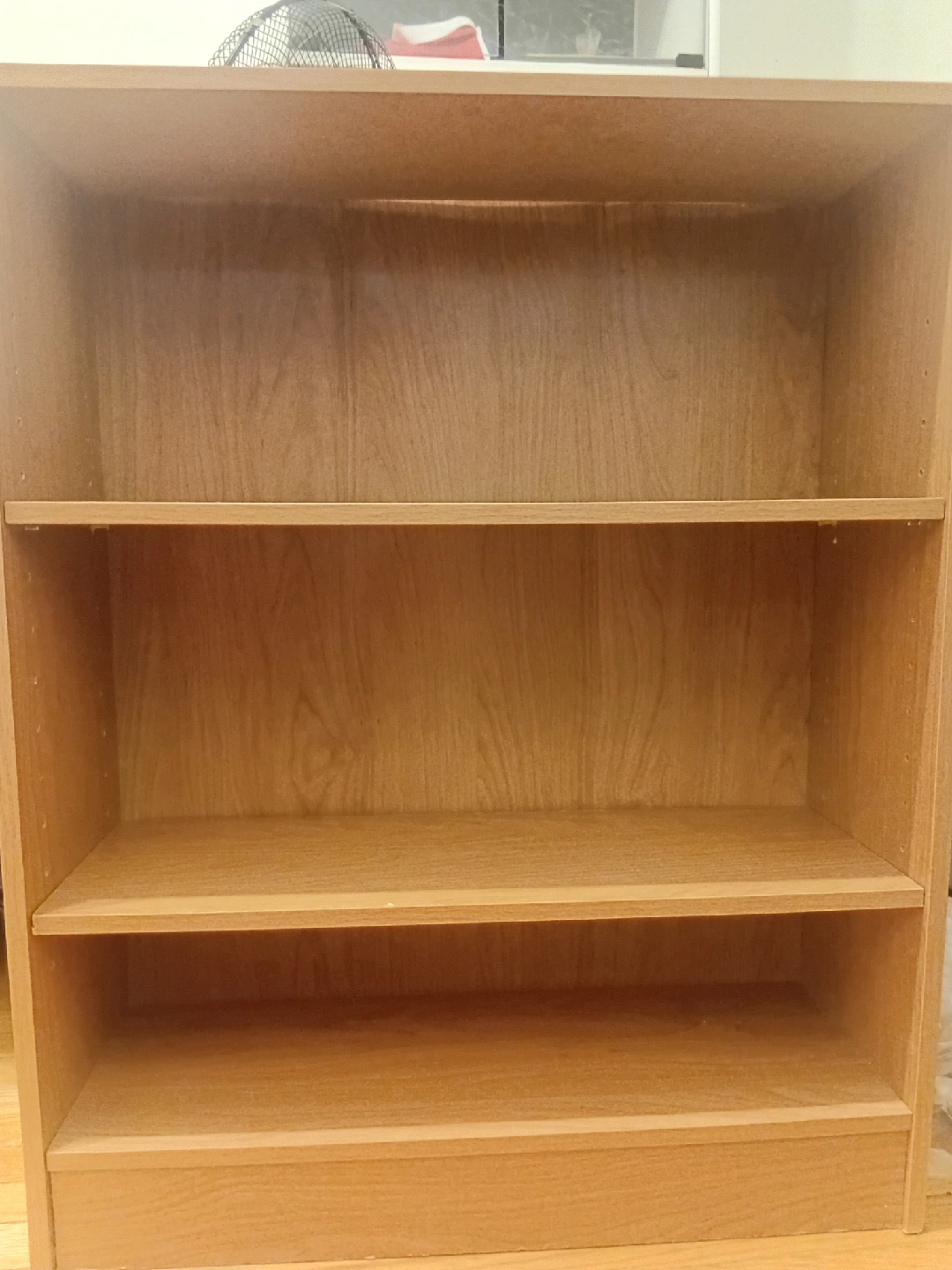 Cute bookcase for free. The shelves are adjustable, but not sturdy (you will probably need to nail them in once you have it set up). Besides that, it's in good condition. Pickup only (it is lightweight).
