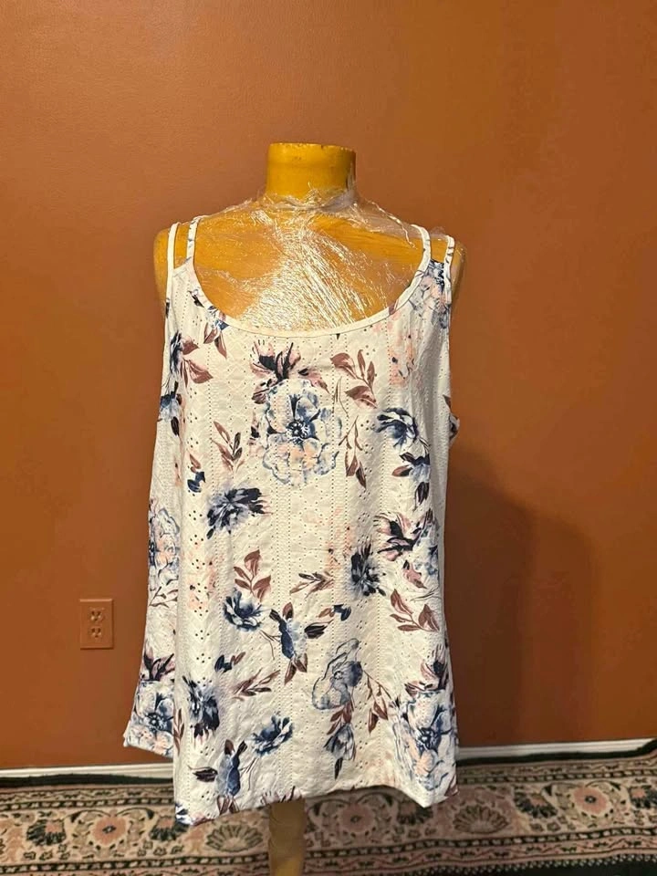 Brand New Size 3XL β White Floral Eyelet Tank Top πΈπ€