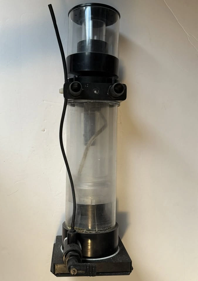 103Good condition, no issues. Rated for aquariums up to 250 gallons. The original version of the worlds best venturi driven protein skimmer features the patented triple pass action in a unique compact design. The unit is completely self-leveling and may be installed in or alongside the sump or aquarium. Made from ozone safe materials and designed for easy maintenance. Collection Cup comes with overflow fitting for connection to reservoir. Requires feed pump rated at 500 GPH. 21 inches tall. Skimmer footprint is 7 inches x 7 inches. Overall footprint required for skimmer and pump will depend on what pump is used.