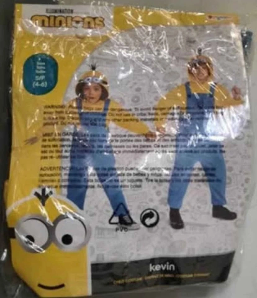 Spend a great Halloween dressed up as "Kevin." The costume is BNWT in size S (4-6) and includes a comfy, soft, hooded jumpsuit/onesie, styled like faux overalls with cute details like fabric buttons and an embroidered Gru on the front. Great option for Halloween.