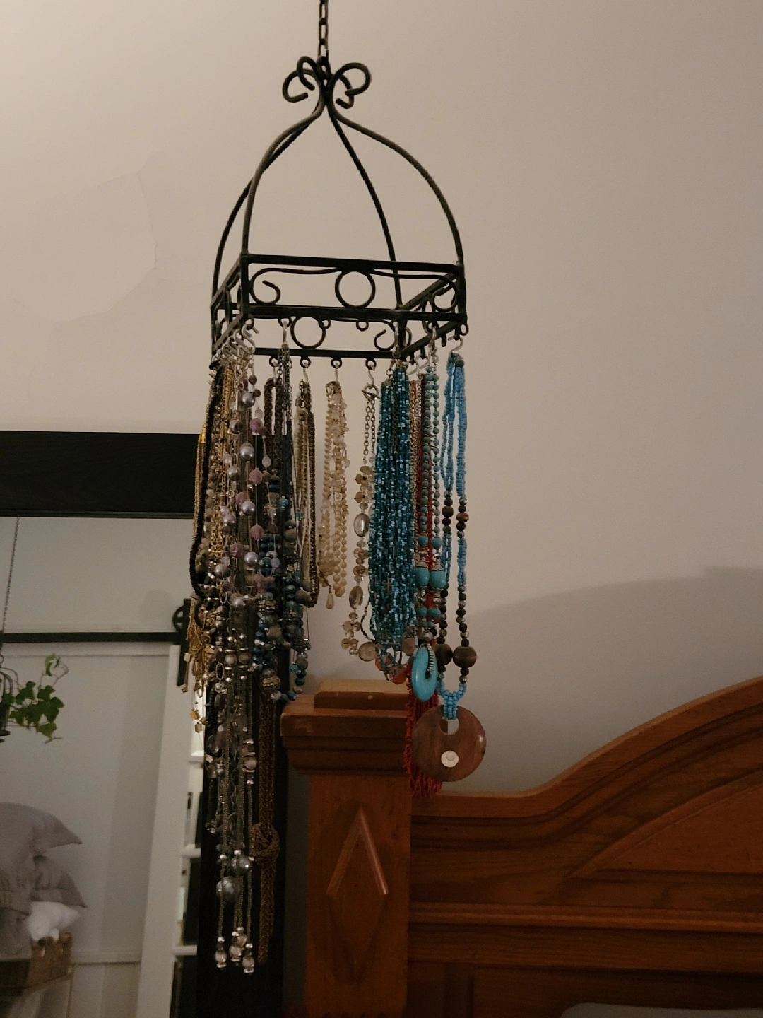75Selling a black wroght iron hanging jewelry organizer. It's in great shape and perfect for keeping your necklaces and bracelets organized and tangle-free! It can also be used as a decorative piece.