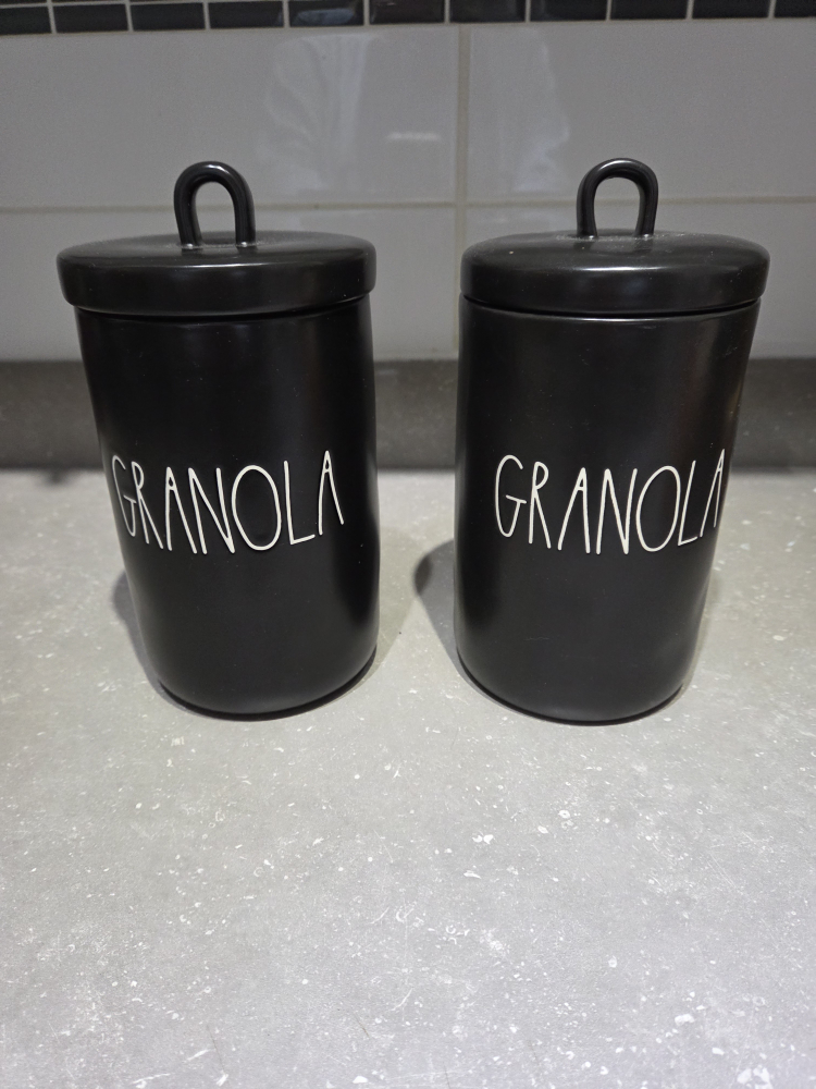 Selling a set of two Rae Dunn granola canisters. They're in great shape and ready to hold your favourite snacks or ingredients! Perfect for adding a touch of farmhouse charm to your kitchen.