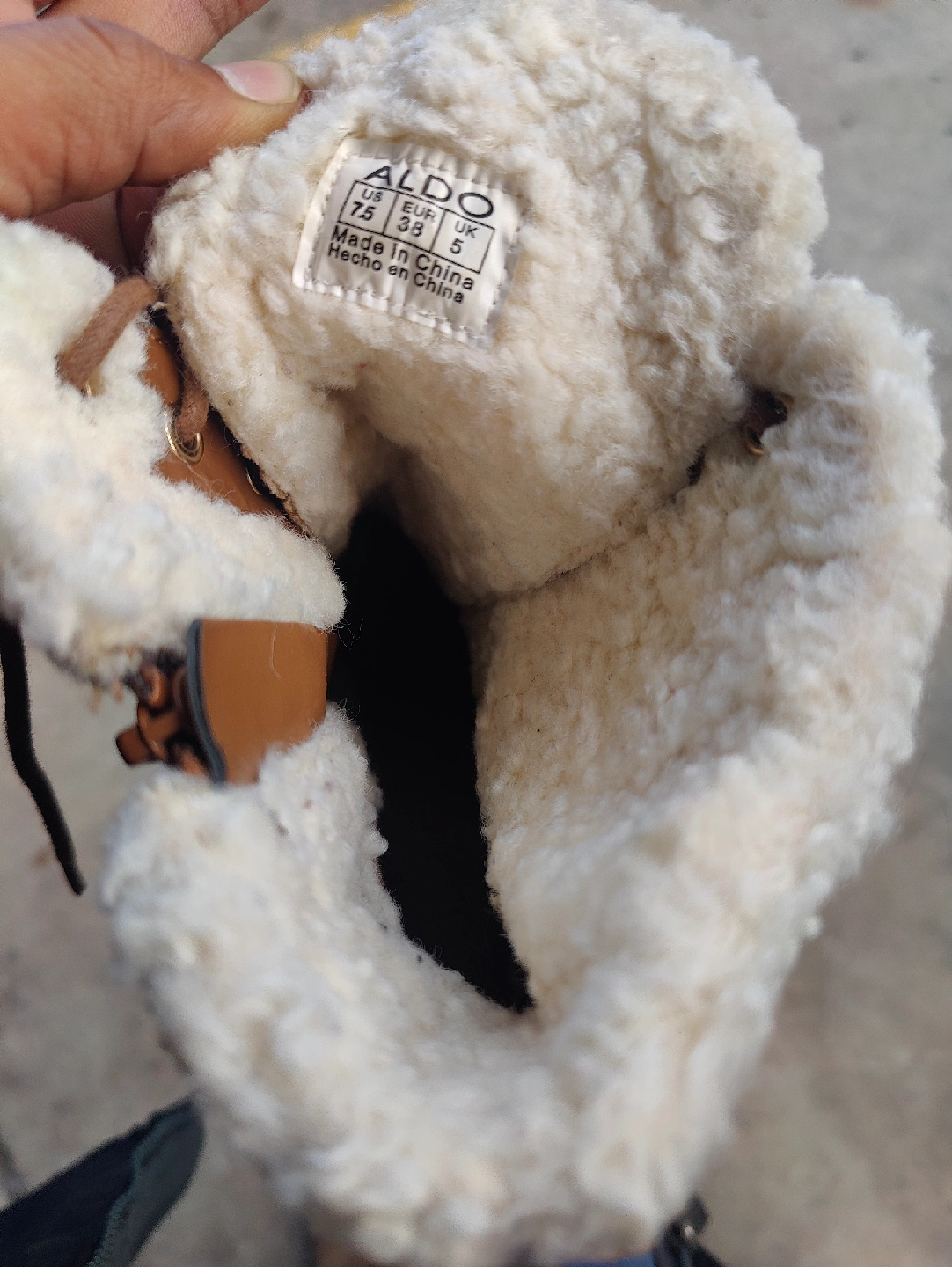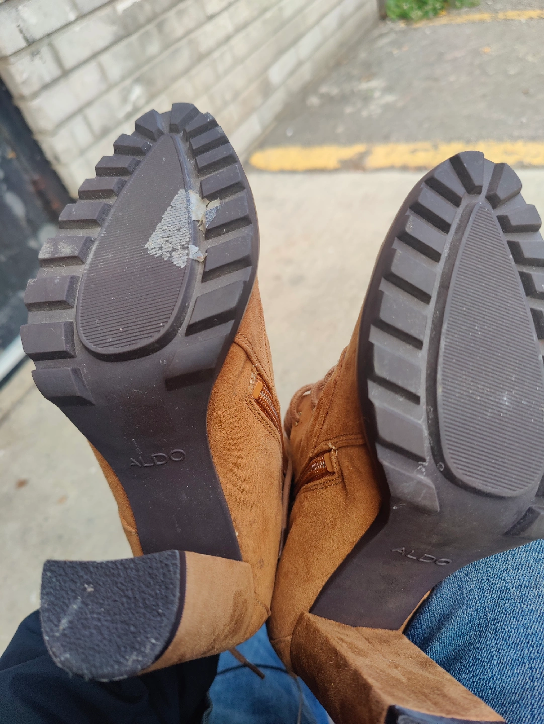 196Selling a pair of Aldo heeled boots in a lovely brown colour! They're a size 7.5. The boots have a lace-up front and a zipper on the side. Perfect for adding a bit of style to your outfit!