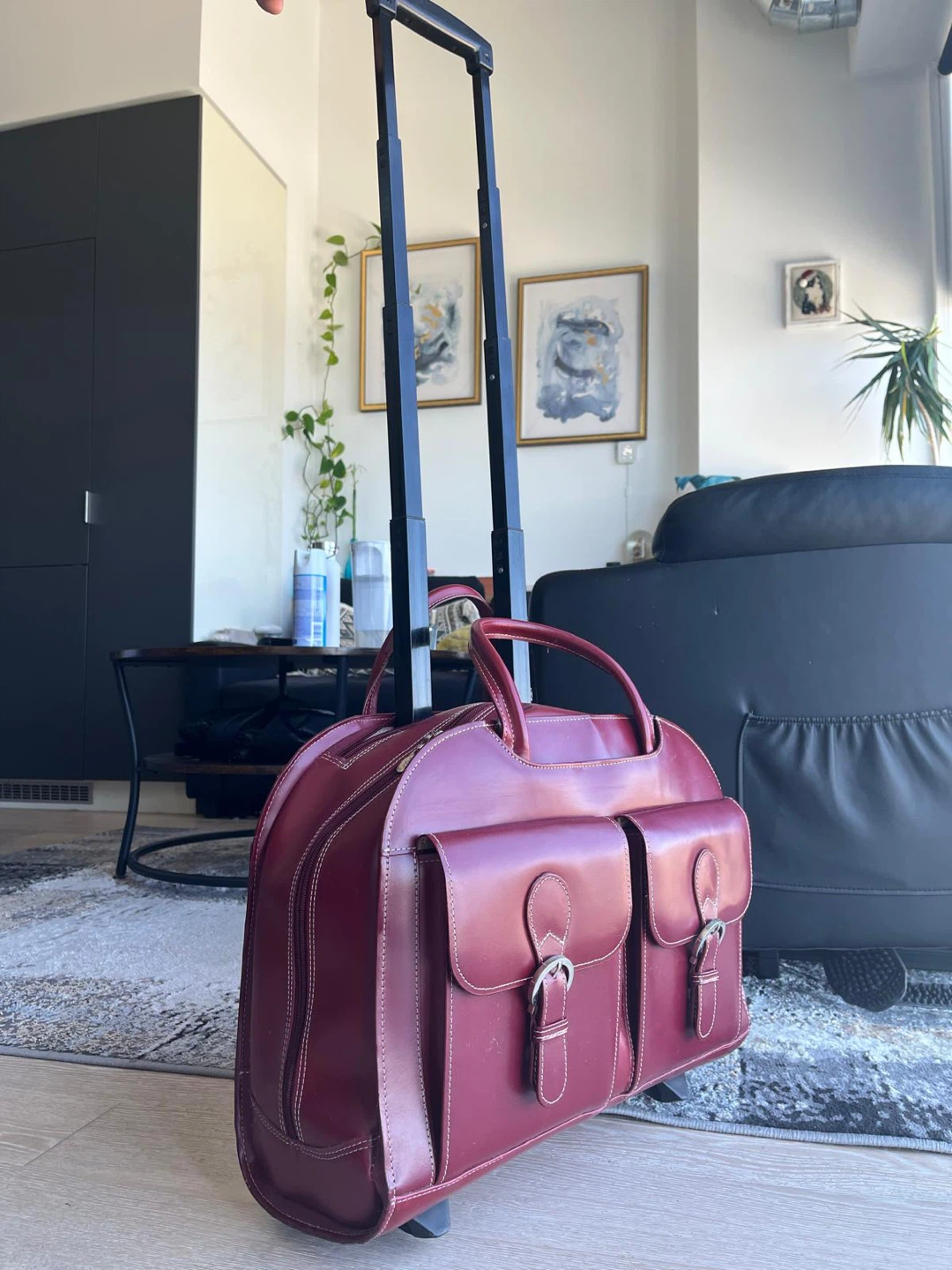 Selling a DAVIS 15" leather wheeled laptop briefcase. It's in great condition and ready for a new owner! The briefcase is a beautiful burgundy colour and features a convenient pull-up handle. It's perfect for carrying your laptop and other essentials while travelling. Retails for $375.00
