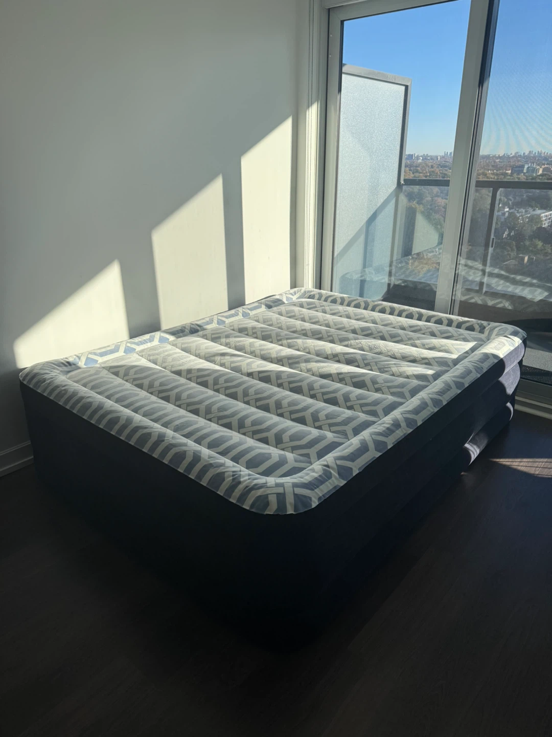 Selling a queen-size Comfort Quest air mattress. It comes with a carrying bag for easy storage and transport, and a built-in pump. Works perfectly, no leaks. Great condition, from a no pets nor smokers home. Originally bought for 119,98 plus taxes.