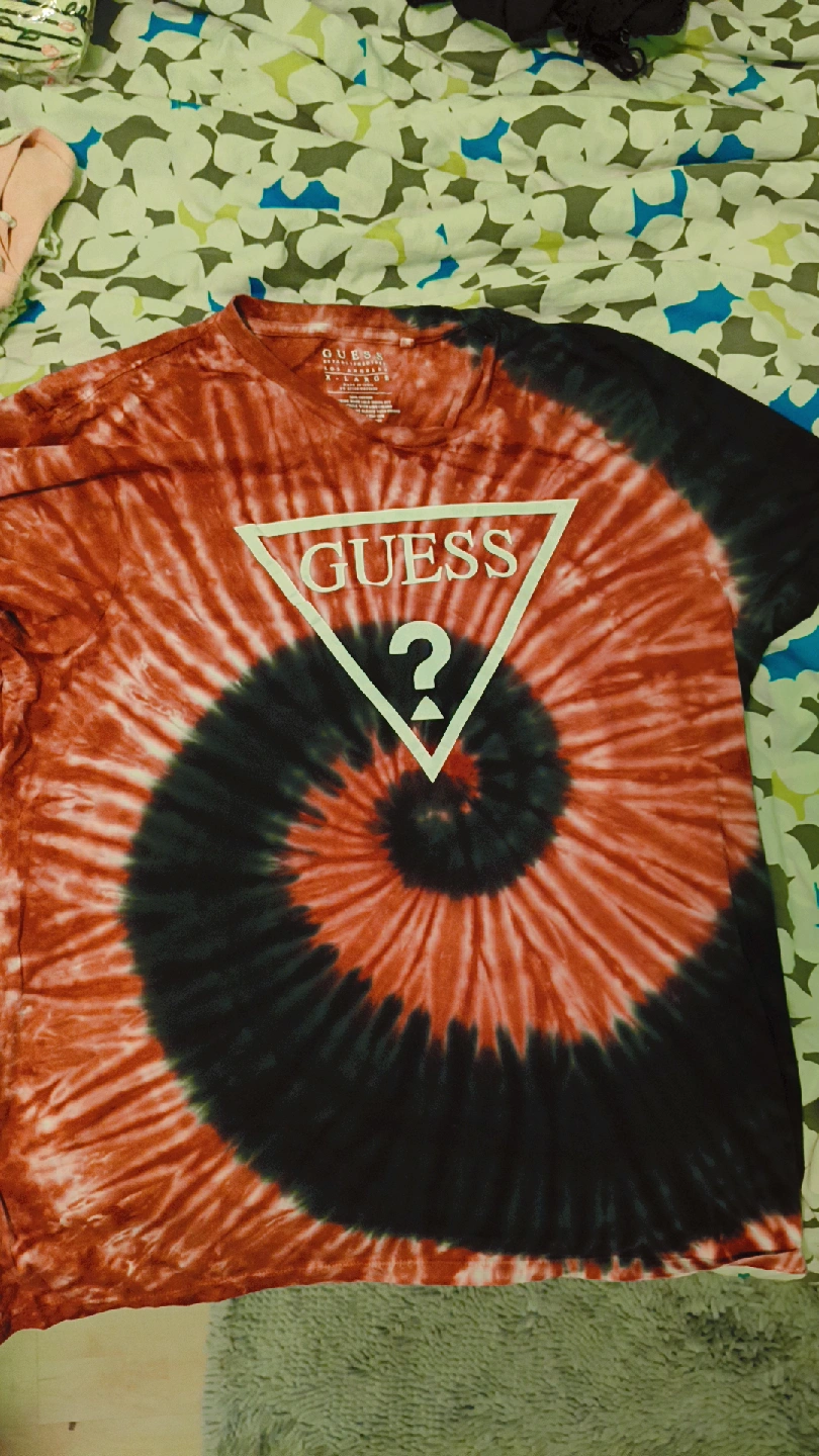 Cool Guess t-shirt with a unique tie-dye design! It features the classic Guess logo on the front. Size is extra large.