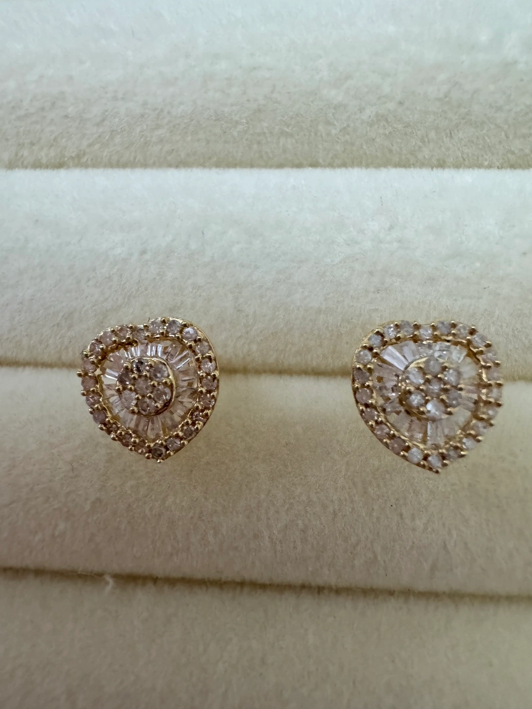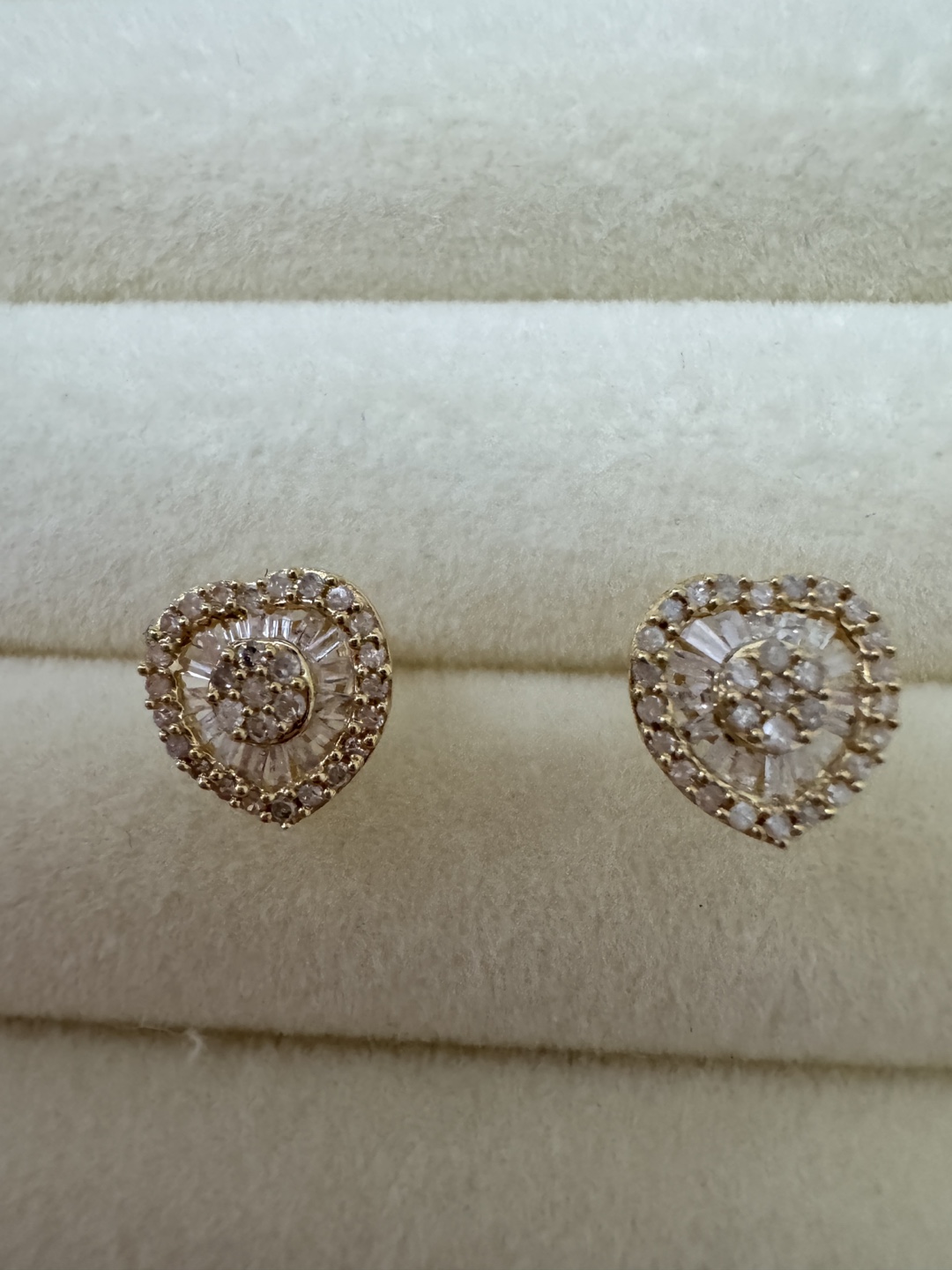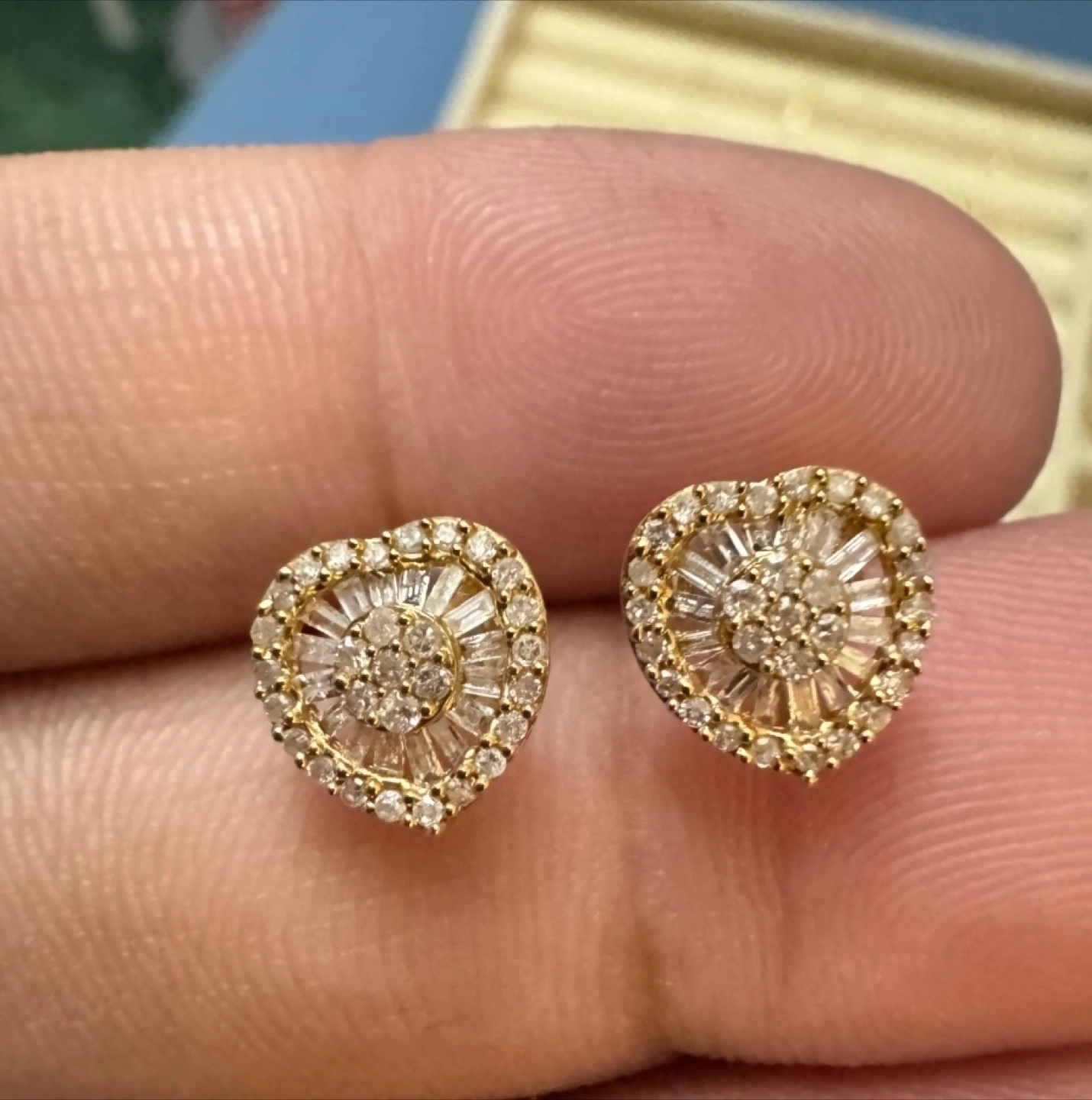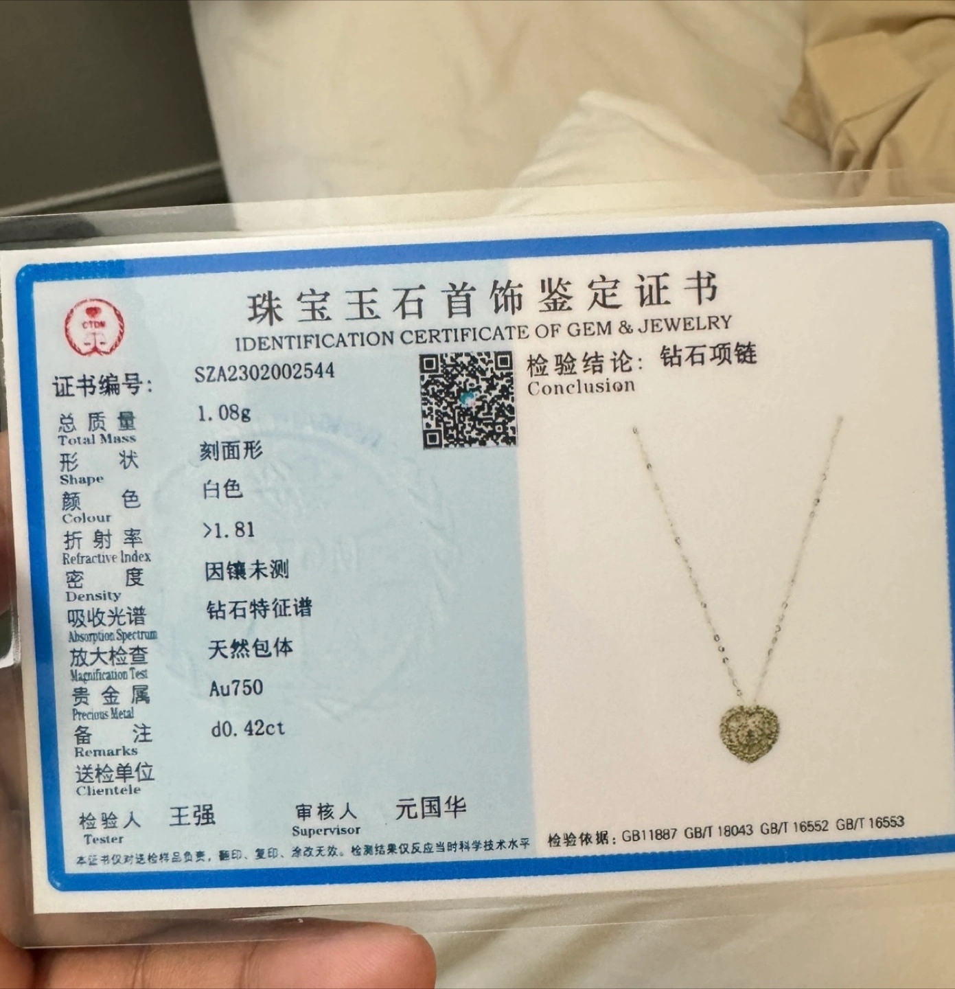 Selling a beautiful diamond heart necklace and earrings set. The certificate of gem and jewelry identification indicates the metal is Au750 (18k gold) with 0.42ct diamonds in each piece. A lovely set for a special occasion. Natural diamond. Brand new.