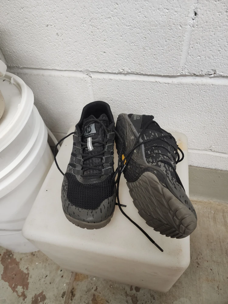 Selling a pair of Merrell Trail Glove shoes. They're black and in good condition, perfect for trail running or everyday wear! n*9
