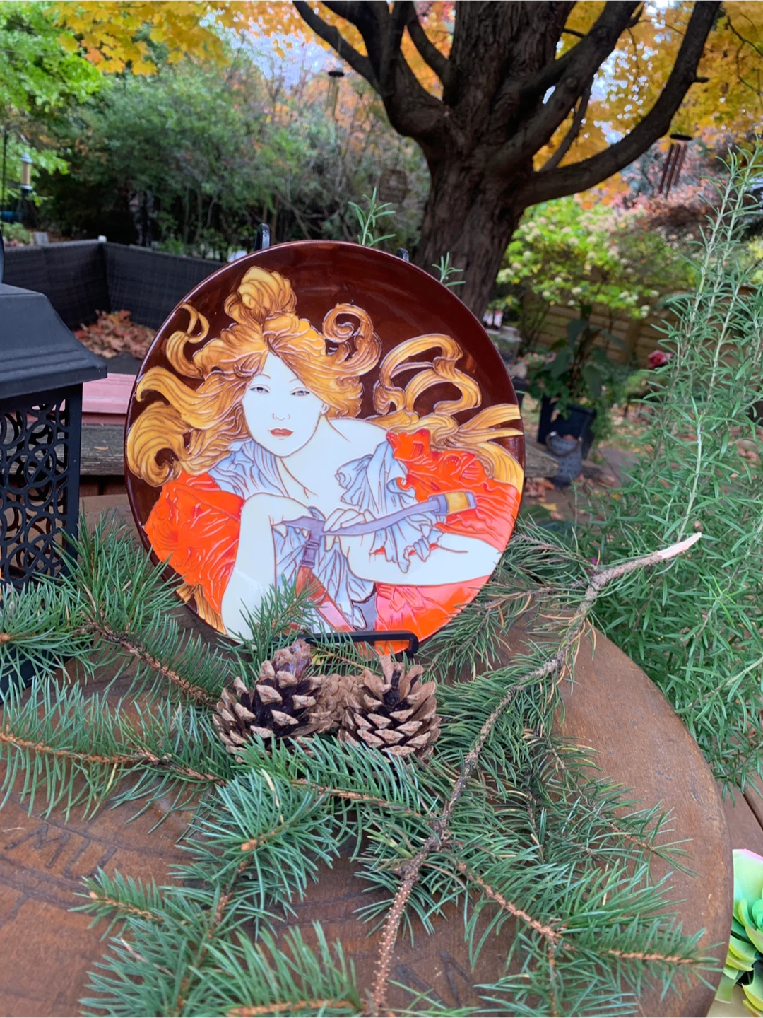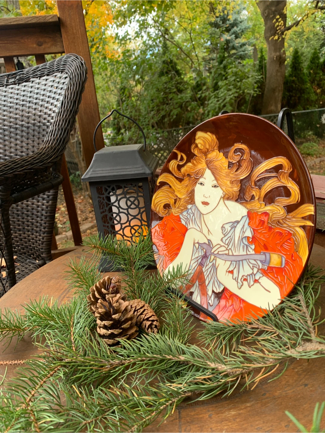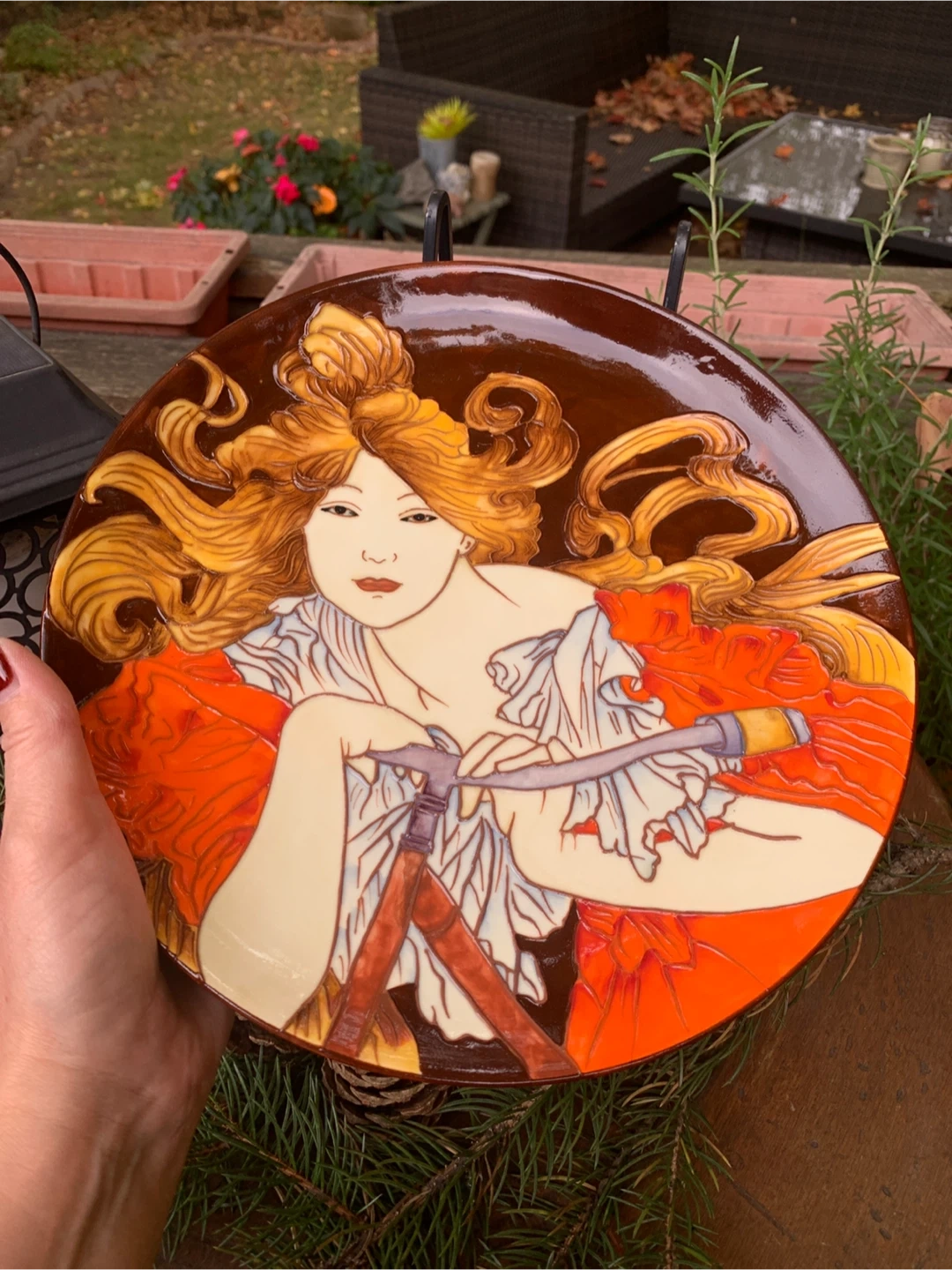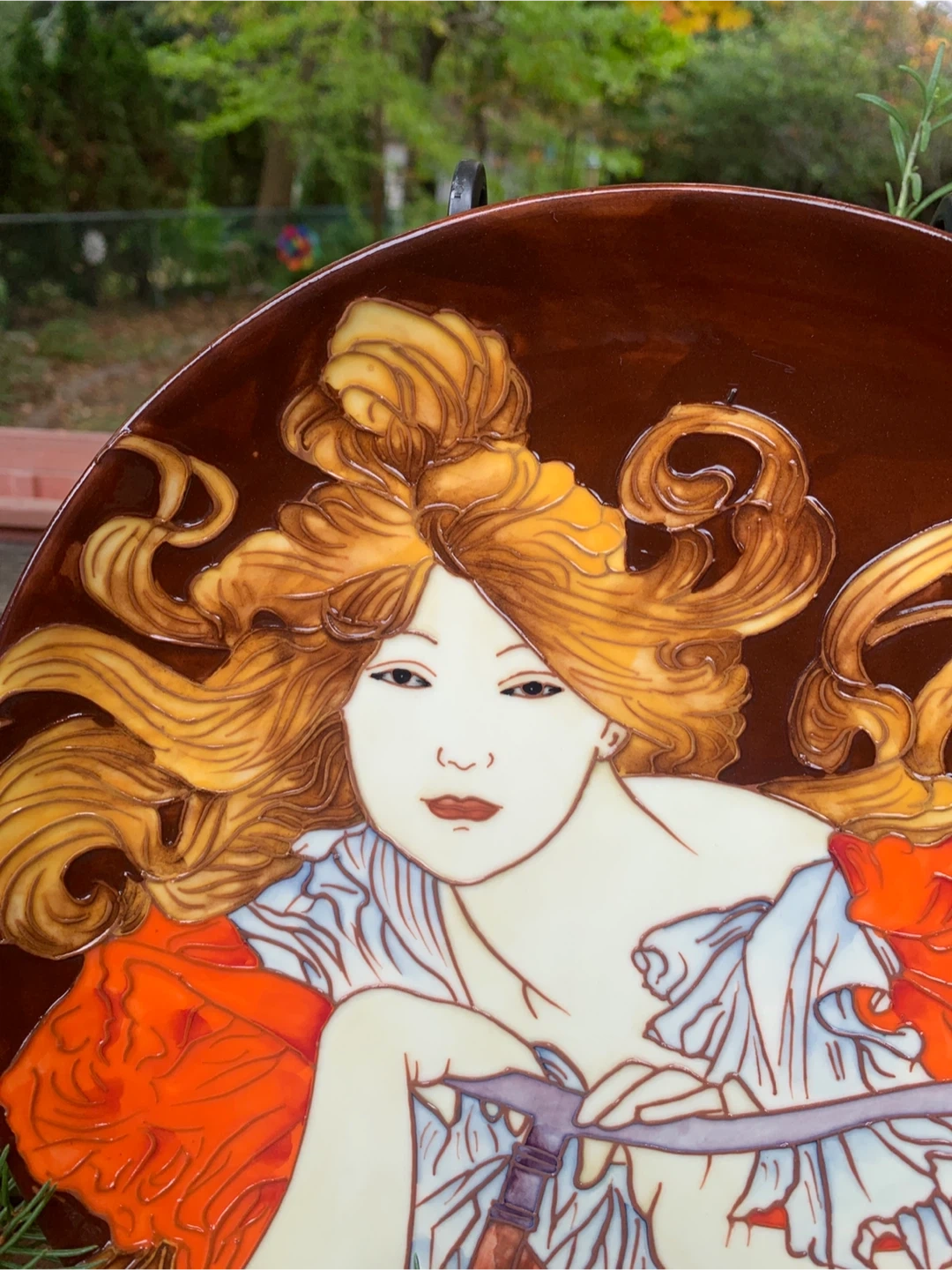 Beautiful decorative plate by Benaya by Innovatron from the United Kingdom. It is in an Art Deco Style and is embossed with multiple glazes. It is a hand painted woman entitled, BICYCLETTE. A stunning plate that and would look great in any home. In excellent condition with no chips cracks or crazing. Would be beautiful on a stand or hung on a wall. The colours are just vibrant!