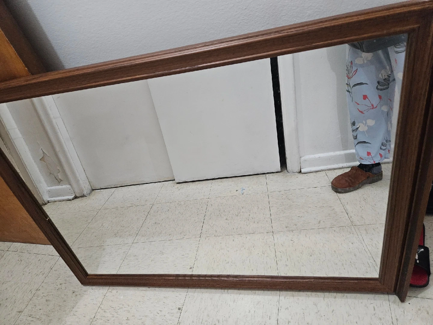 Selling a mirror with a wood frame. It's in good condition and ready to brighten up your space!
