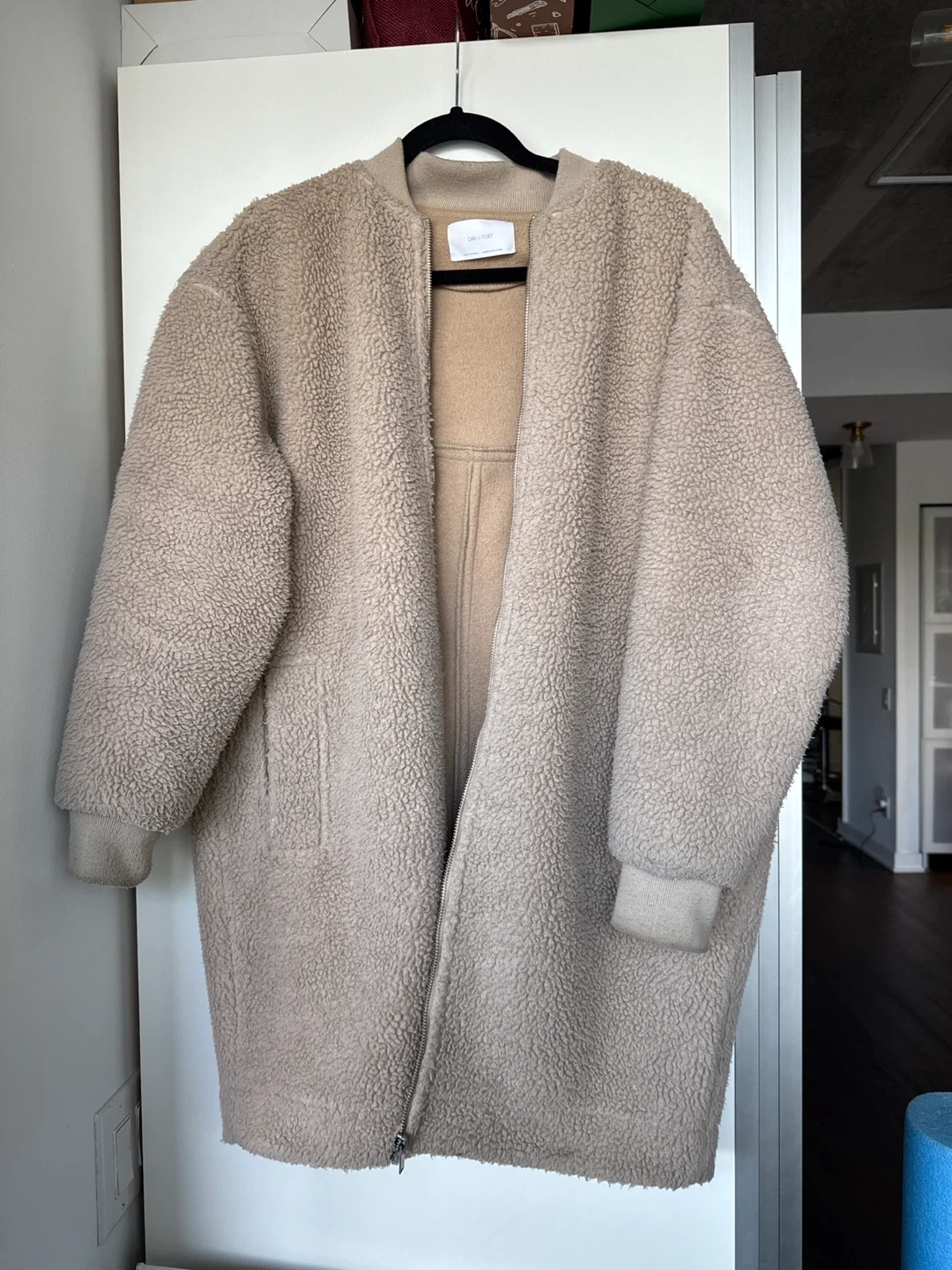 Selling a cozy Oak + Fort teddy bomber jacket! This jacket is perfect for staying warm and stylish. The soft teddy material makes it super comfortable. It's in excellent condition, ready for a new home bought for $200