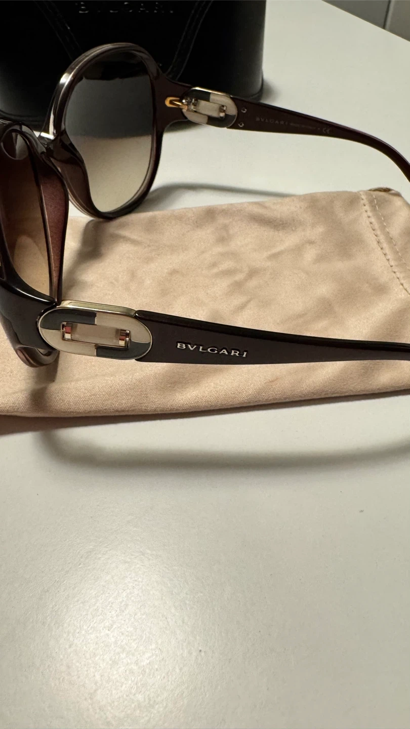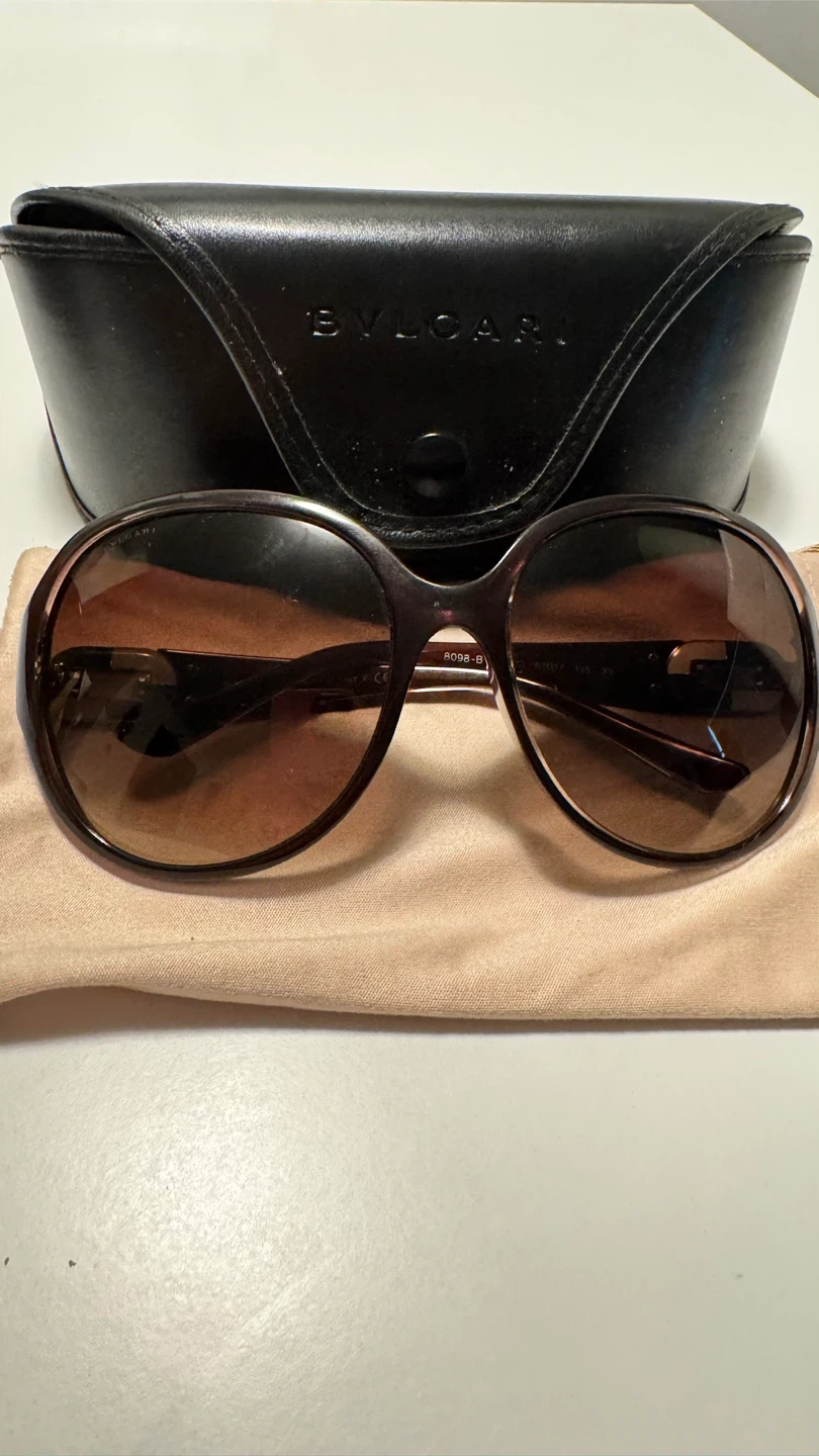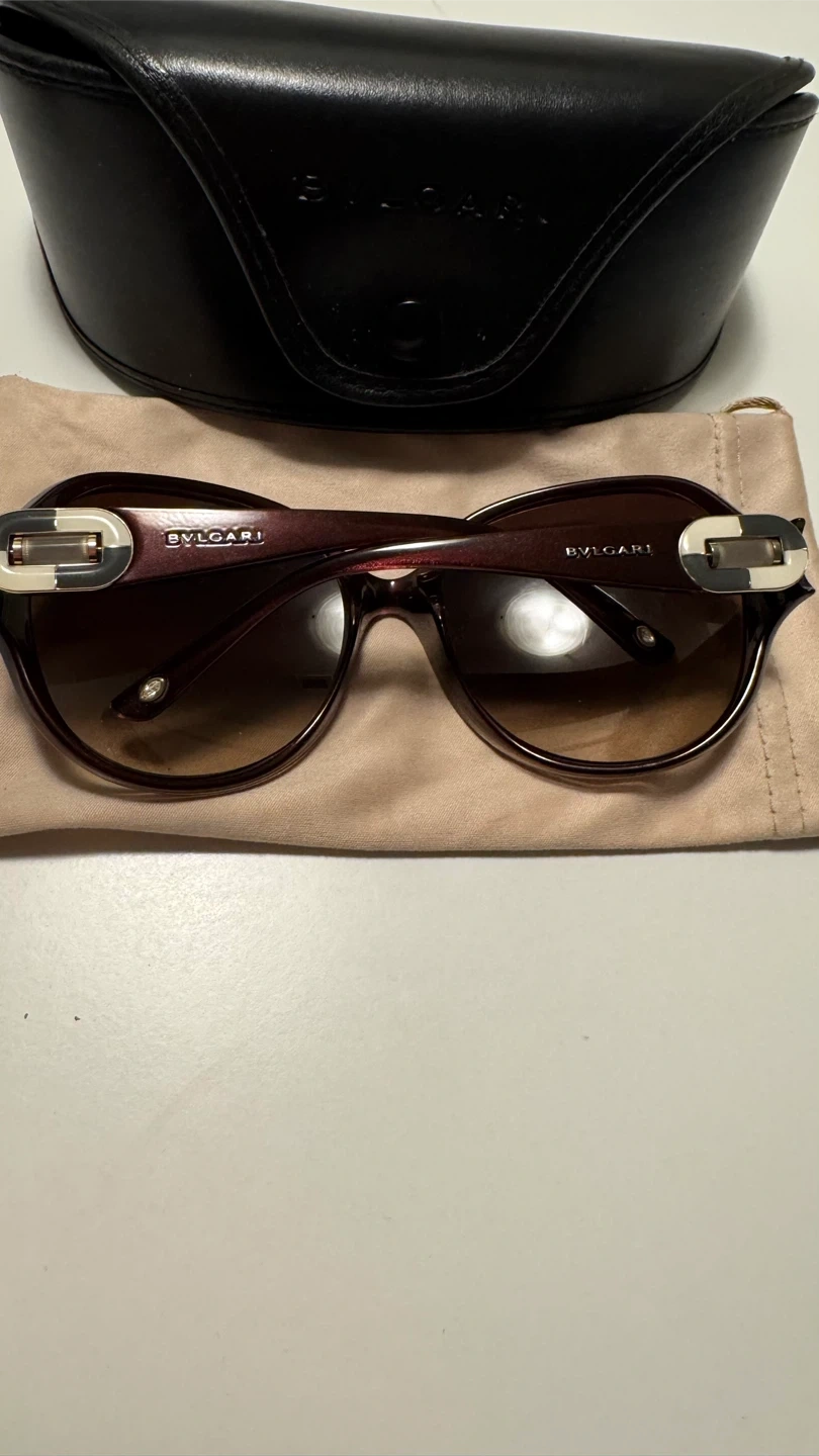 71Selling a beautiful pair of BVLGARI BV 8098-B sunglasses. They feature an oval shade and a plastic frame in a red bordeaux colour. The front and leg colours are brown, with gradient brown lenses. Size each lens: 61, bridge: 17, legs: 125